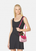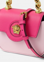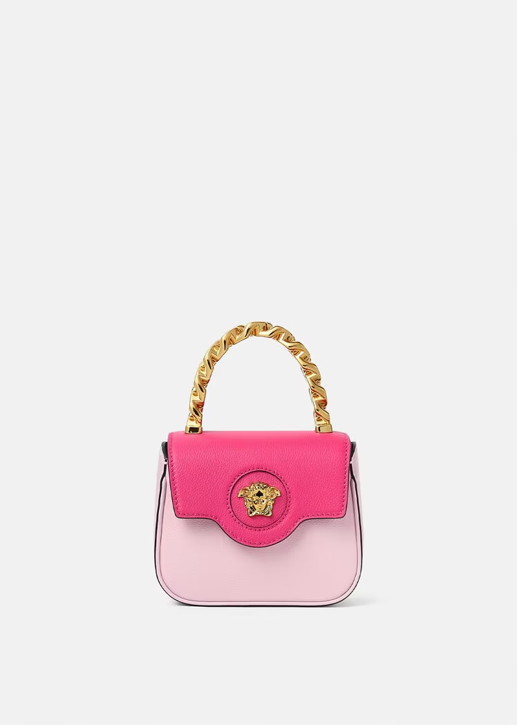 The La Medusa mini bag has been crafted in Italy from grained leather. The central Medusa is instantly recognizable, and the fixed-chain top handle adds an alternate carry option along with the detachable and adjustable shoulder strap.
