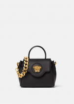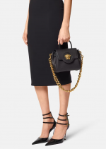 Crafted in Italy from premium leather, Versace’s latest handbag is adorned with a Medusa plaque – the same décor that was discovered on the doors of the brand’s first headquarters in Milan. The slouchy silhouette can be styled on the wrist or across the shoulder, featuring two detachable shoulderstraps: one leather and one chain.