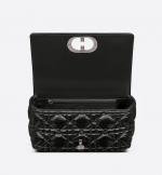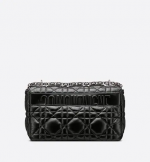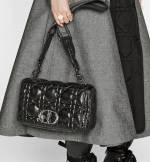 The Dior Caro bag combines modernity with timeless elegance. The design is crafted in black calfskin and is distinguished by its original quilted-effect Macrocannage stitching. The bag features a flap adorned with a ruthenium ‘CD’ twist clasp, inspired by the seal of a Christian Dior perfume bottle. The detachable chain shoulder strap with ‘CD’ signature links allows the large bag to be carried by hand or worn over the shoulder and may be replaced by one of the House’s wide embroidered straps for day or evening attire.