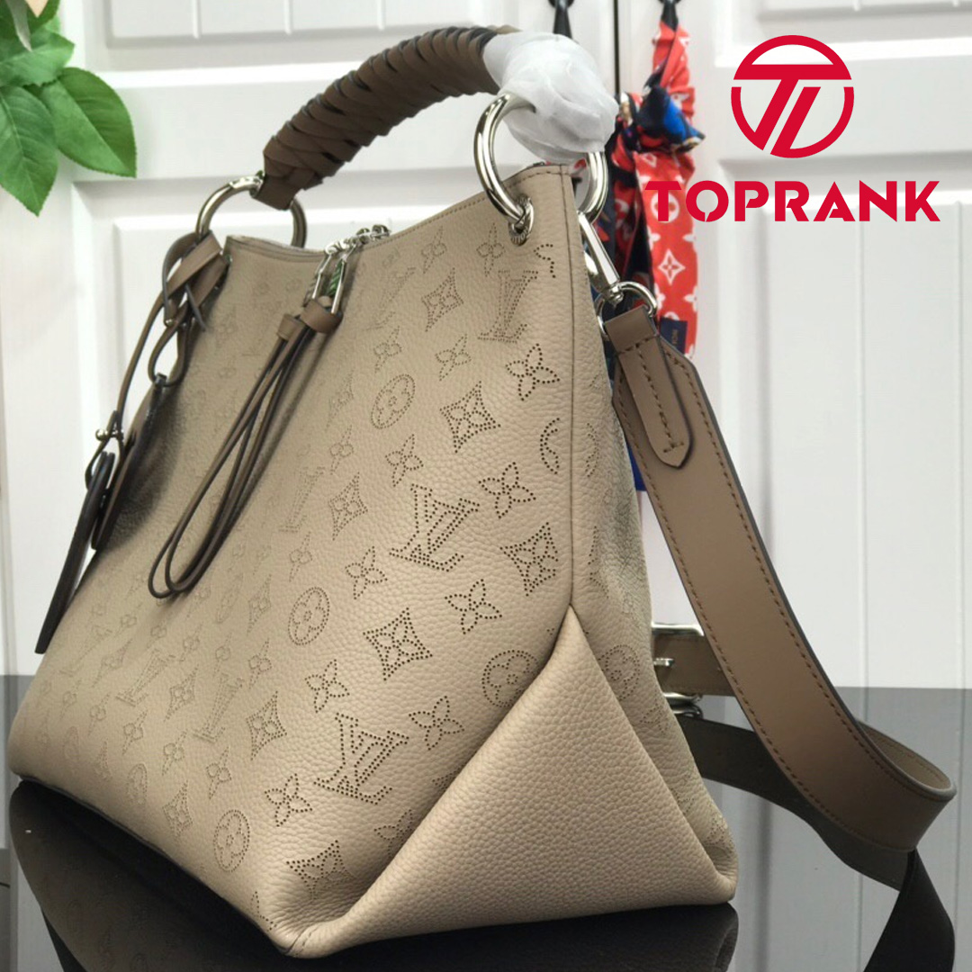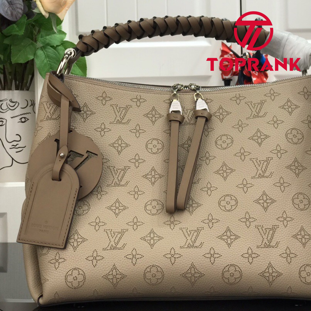 The Beaubourg Hobo MM bag is made from Mahina calf leather perforated with the Monogram pattern. It boasts a stylishly braided-leather top handle, with hand-painted edge-dyeing along the braids. The leather zip pulls and large LV charm signs the bag. A detachable, wide leather strap means that this supple bag feels comfortable against the body.