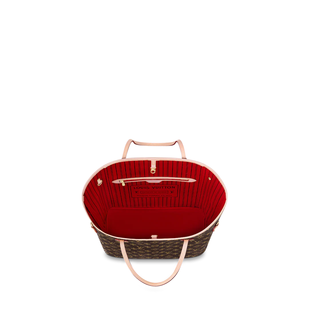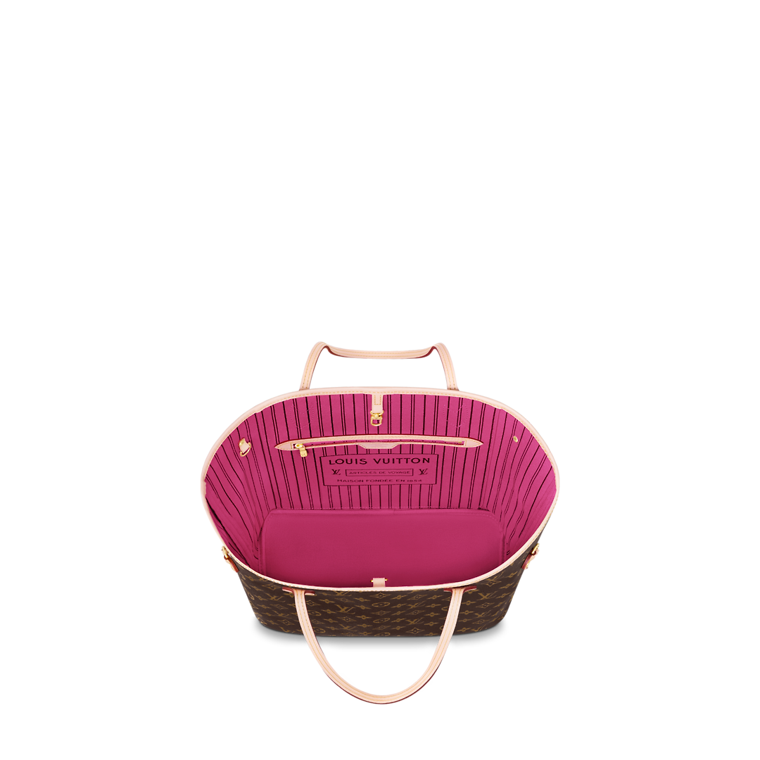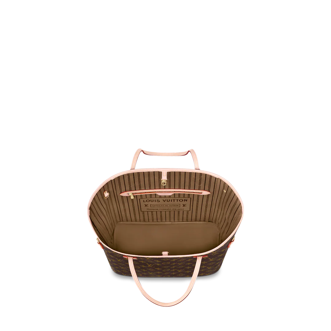 The Neverfull MM tote bag combines timeless design with traditional details. Crafted from supple Monogram canvas and trimmed in natural leather, it’s roomy without being bulky. The side drawstrings can be adjusted for a smart look or loosened for a more casual look, while the comfortable slim handles allow it to be carried over the shoulder or on the elbow. The colourful fabric lined interior features a removable wallet that can be used as a handbag or additional pocket.