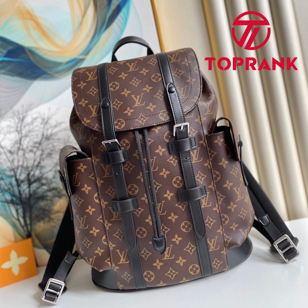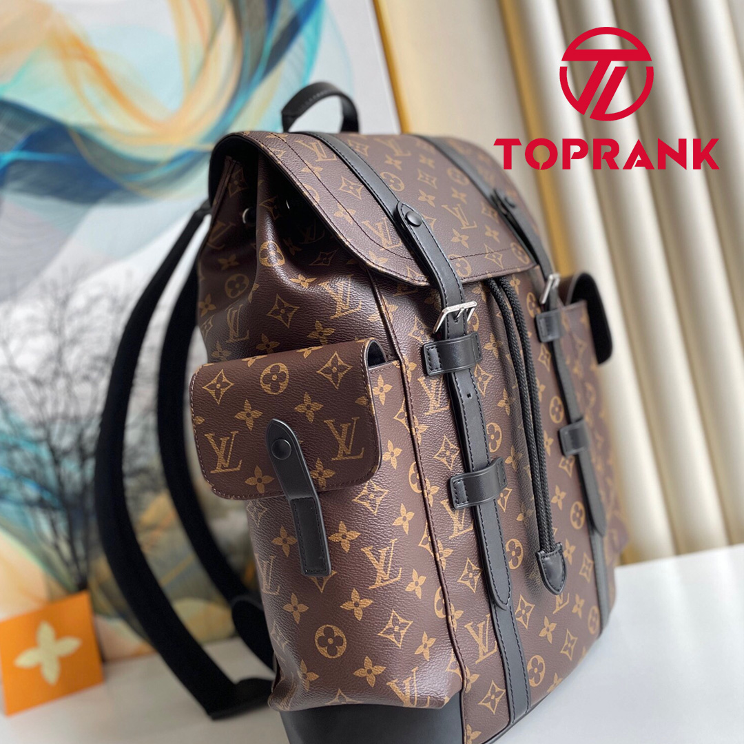 41 x 47 x 13 cm (Length x heightx width ) •Adjustable leather shoulder straps•Leather top handle•Cowhide leather trim•Silver brass finishings•Flap opening•Press stud and drawstring closure•Textile lining•2 side pockets•Internal iPad pocket•Internal zipped pocket•2 internal flat pockets•Monogram canvas body