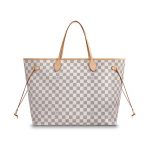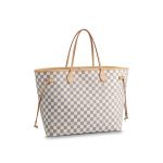 -Legendary Neverfull: always exactly what you need it to be. Capacious but not bulky, structured yet supple, at home on the town or in the country. Cinch the side laces, and voilo! it’s a sleek city bag. Loosen them and you have a chic, practical tote. The slim leather handles fit over the shoulder or on the arm. Shown here in Damier Azur canvas.