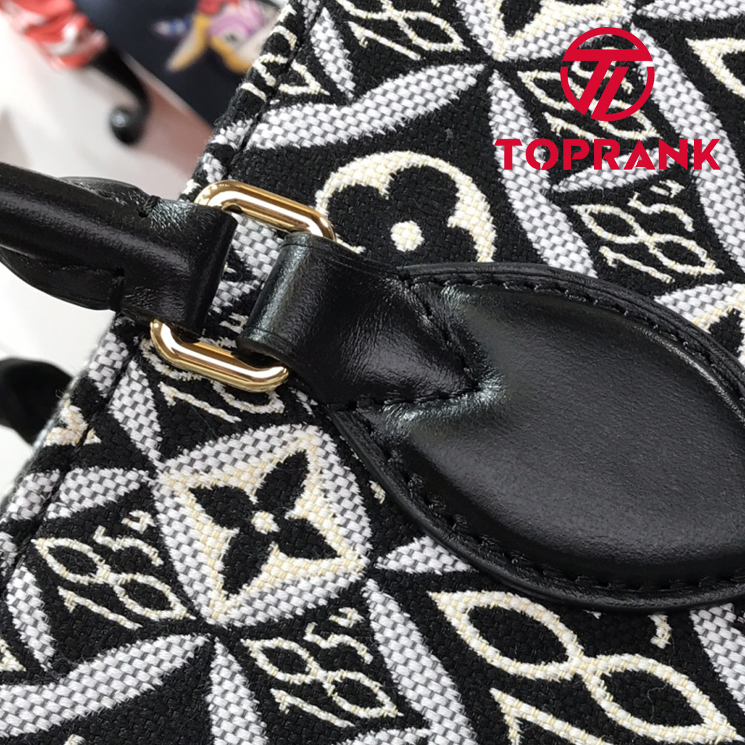Denim and Leather play stylishly together on this casual-chic Onthego GM tote bag, creating an interesting illusion of texture. Subtle motifs add refinement, while the leather trim brings a bold touch. A roomy, fashionable piece, perfect for everyday wear.