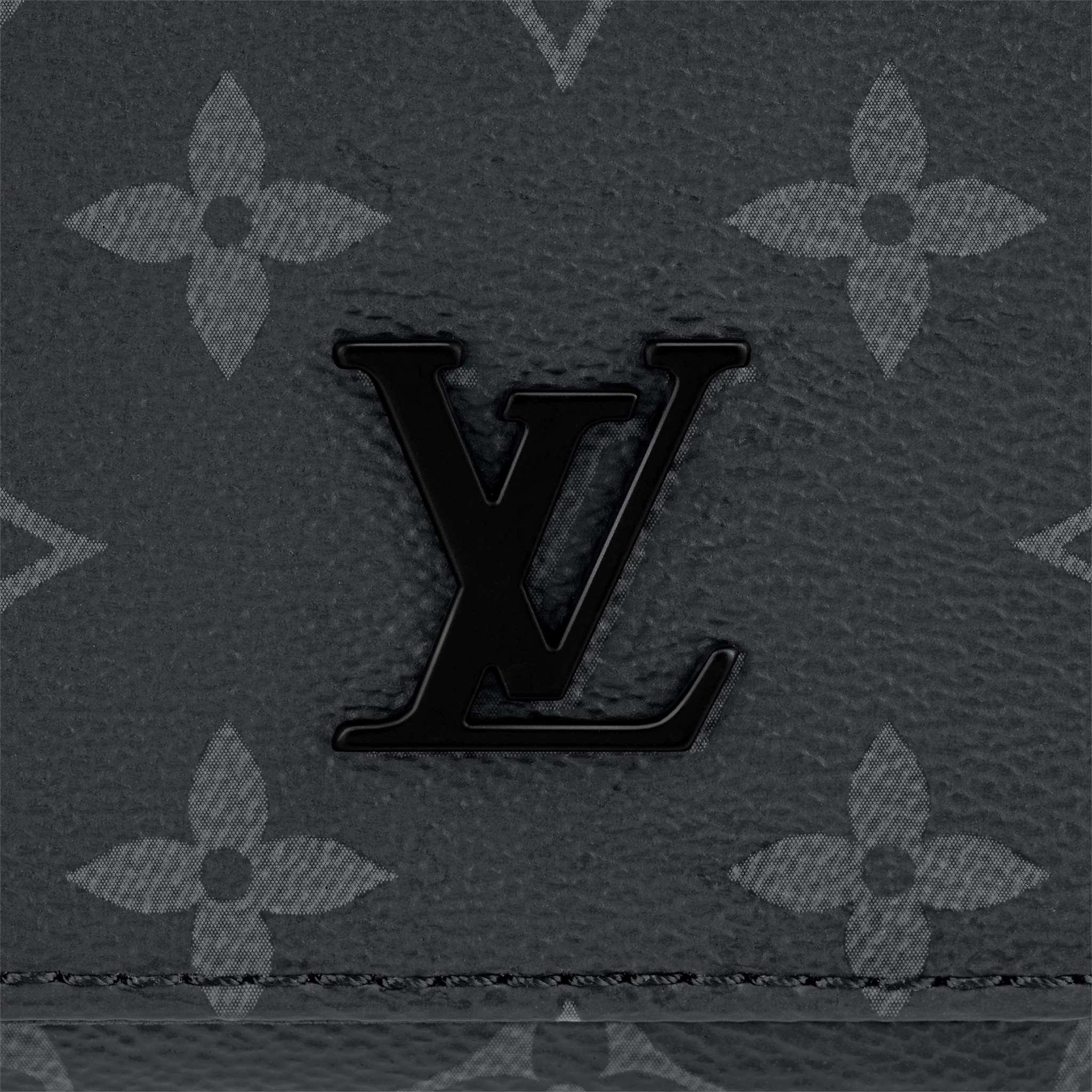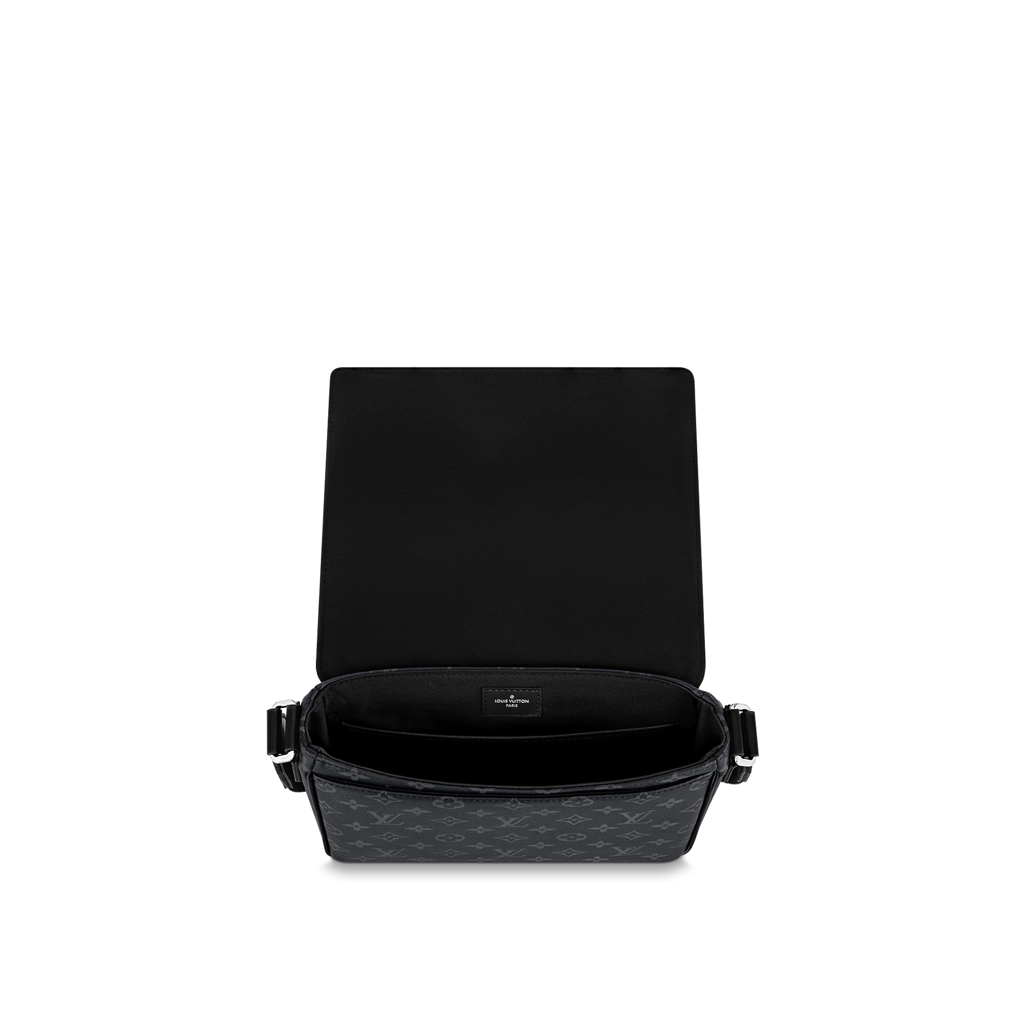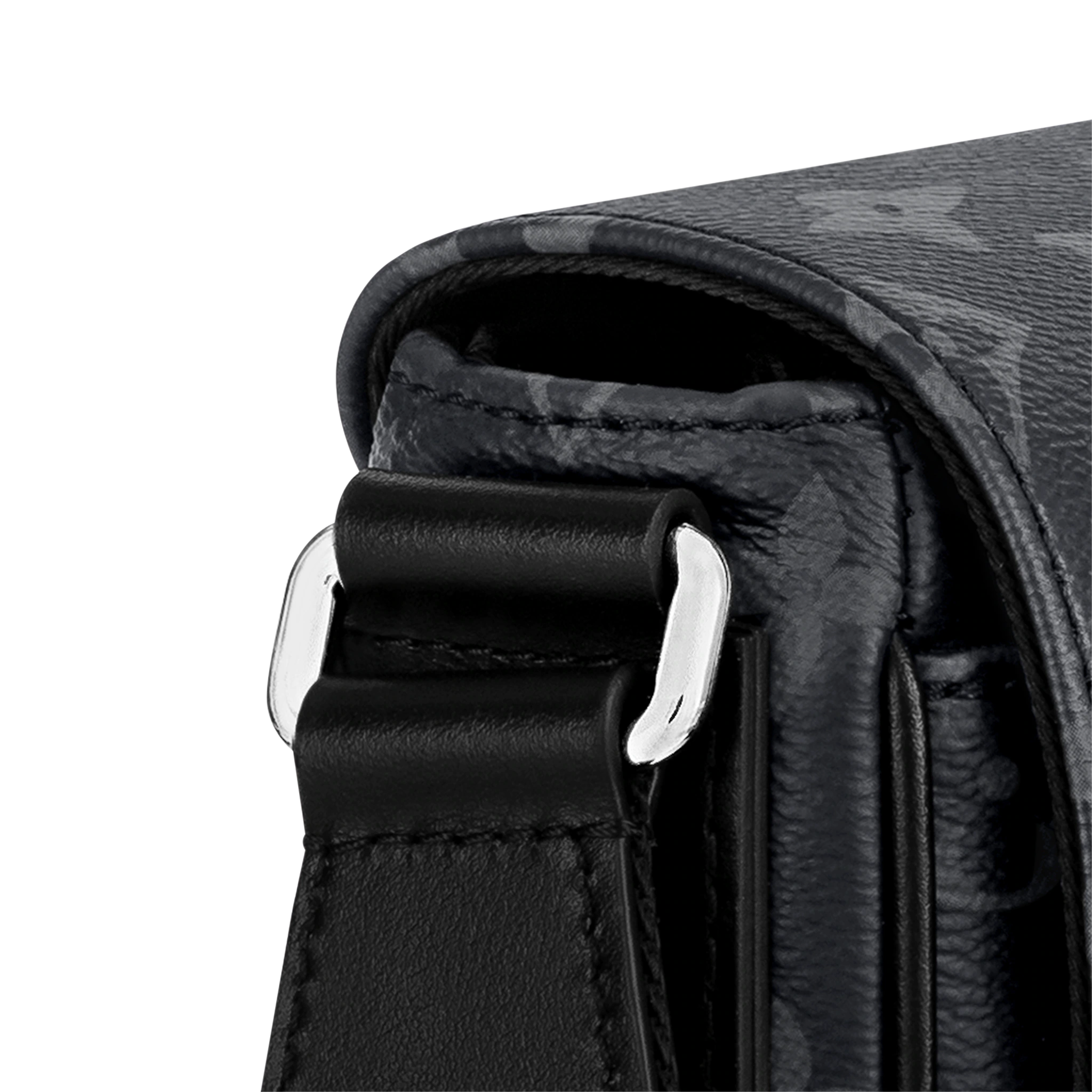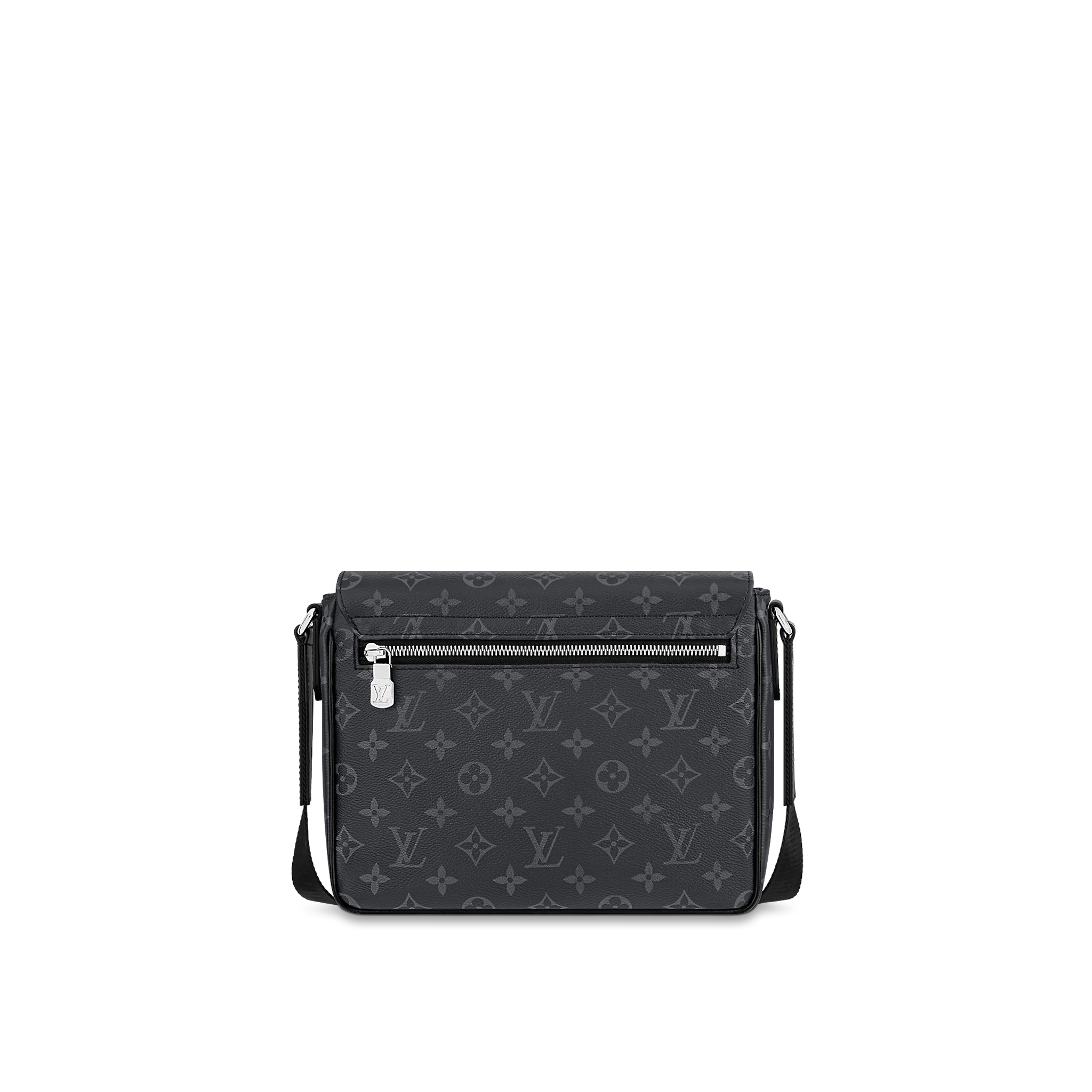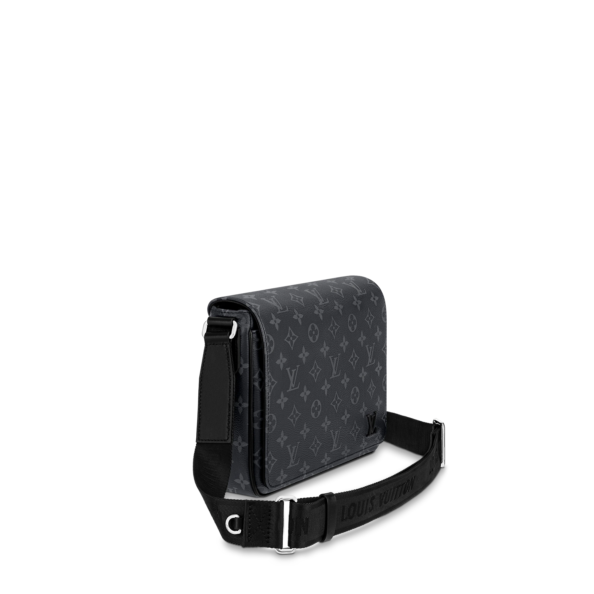 Made from masculine Monogram Eclipse canvas, the new District PM is a messenger-style bag with a contemporary design. An outside back zipped pocket gives quick access to essentials while the adjustable shoulder strap ensures comfortable carry. The strap is signed “Louis Vuitton” and the lower front corner features black metallic LV initials.Product details10.2 x 7.9 x 2.8 inches(length x Height x Width)Monogram Eclipse coated canvasCowhide-leather trimTextile liningSilver-color hardwareFlap with magnetic closureZipped back pocket2 inside flat pocketsInside front pocketStrap:Not removable, adjustableStrap drop: 12.2 inchesStrap drop max: 24.4 inchesChain:Z01