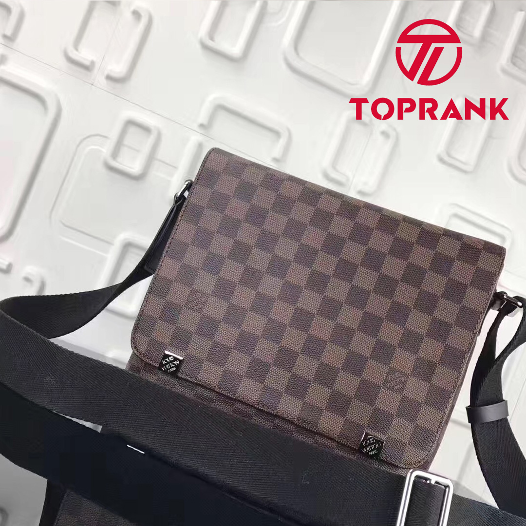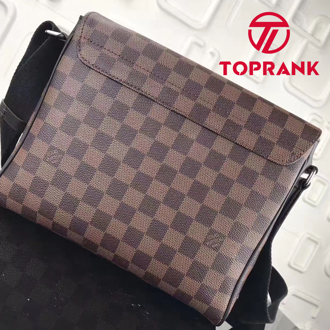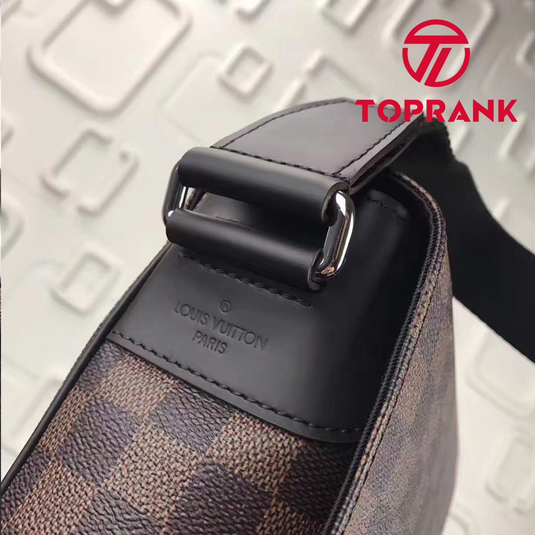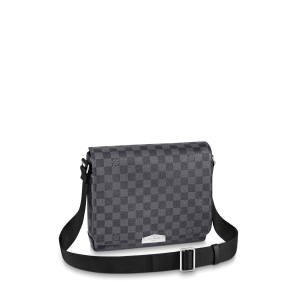 25.0 x 22.0 x 8.0 cm (Length x heightx width ) •9.8 x 8.7 x 3.1 inches•Damier Ebene canvas•Textile lining•Cowhide leather trim•Silver colored metallic pieces •Louis Vuitton Paris plaque in Ruthenium colored metal•Adjustable strap•2 internal iPad flat pockets•Flat pocket under the flap•Magnetic closure