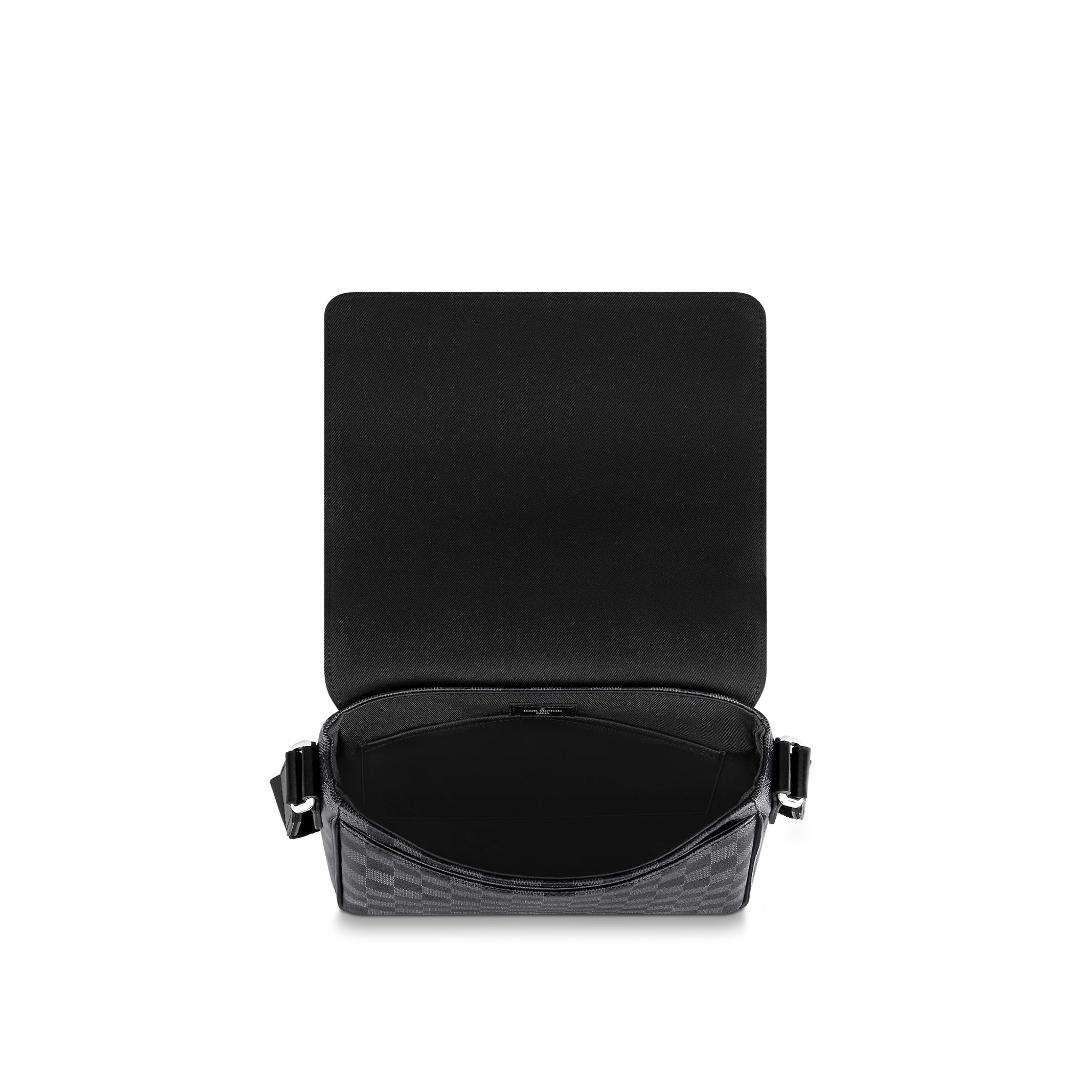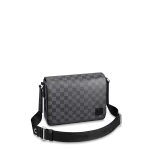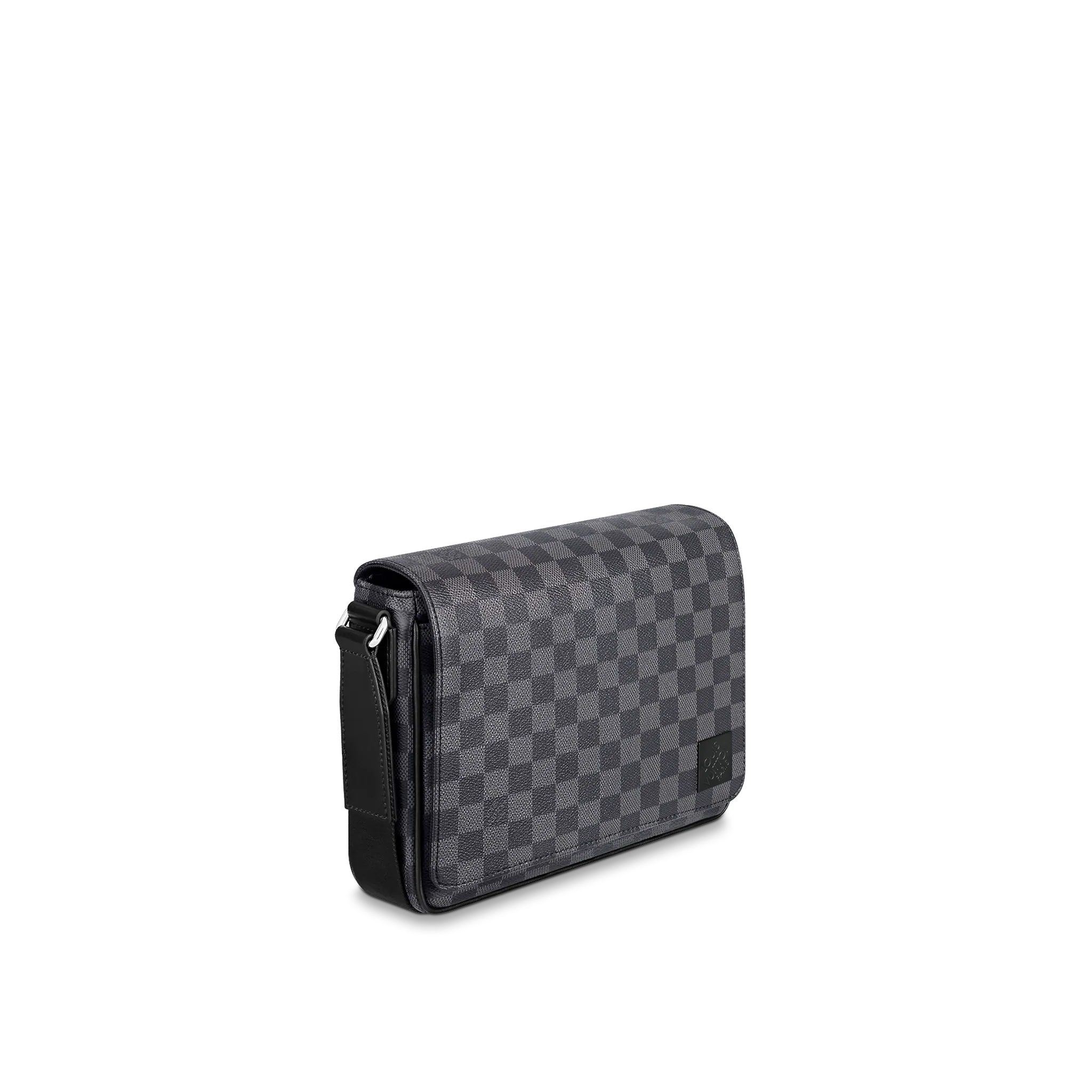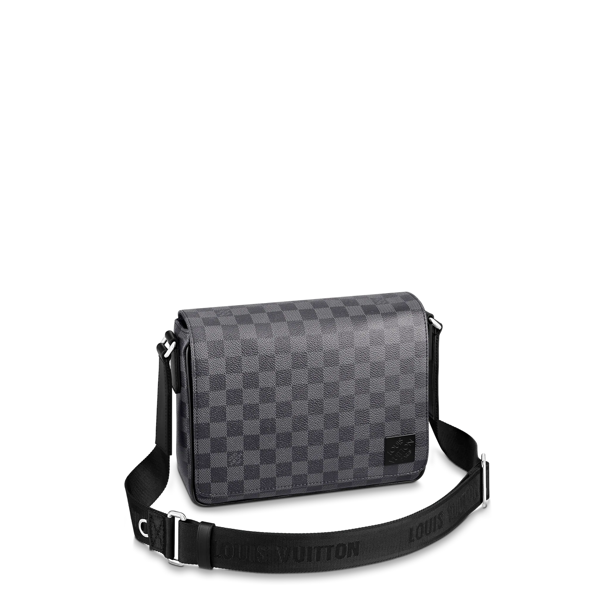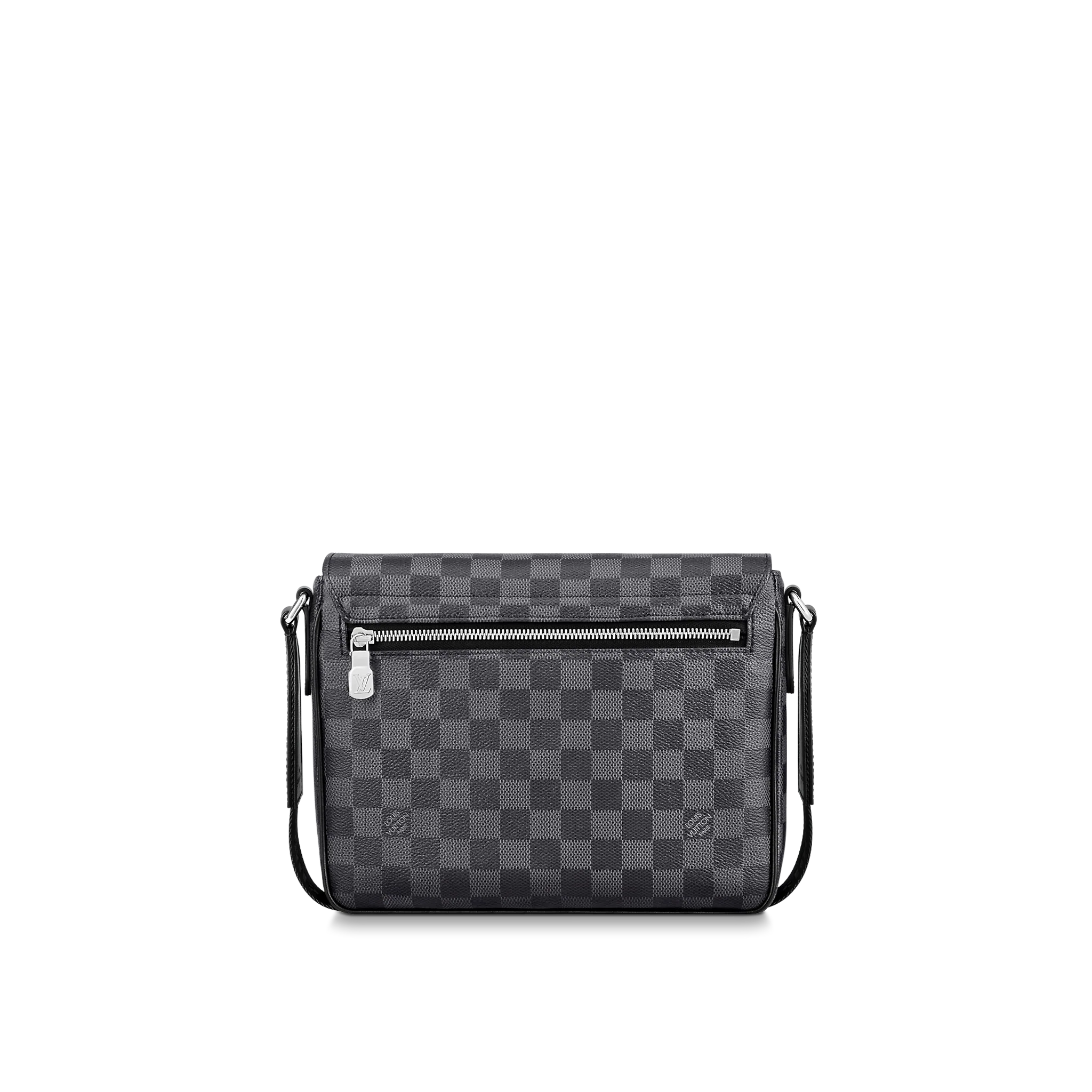 A little smaller and more rectangular than the previous version, the new District PM in Damier Graphite coated canvas has been revamped to emphasize the purity and proportions of this emblematic messenger bag. The outside zipped pocket and inside pockets keep things organized. The adjustable strap, signed “Louis Vuitton”, ensures carrying comfort.Product details10.2 x 7.9 x 2.8 inches(length x Height x Width)Damier Graphite coated canvasCowhide-leather trimTextile liningSilver-color hardwareFlap with magnetic closureZipped back pocket2 inside flat pocketsInside front pocketStrap:Not removable, adjustableStrap drop: 12.2 inchesStrap drop max: 24.4 inchesChain:Z01