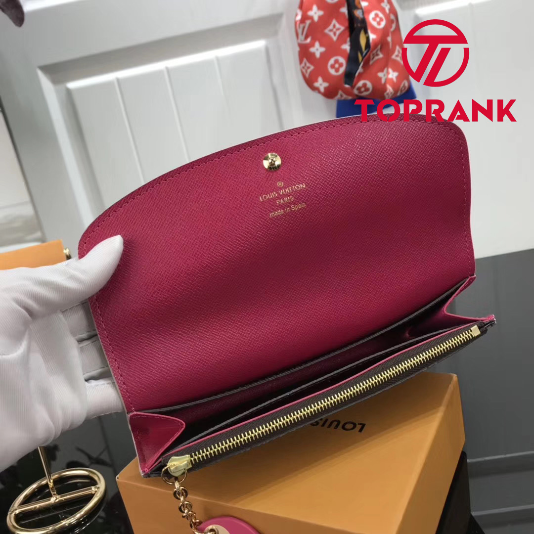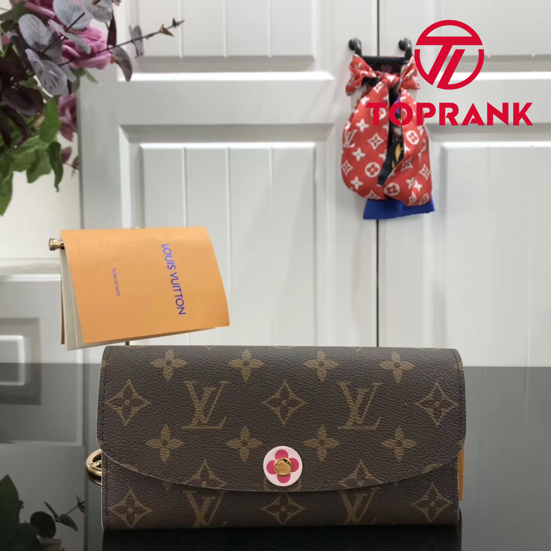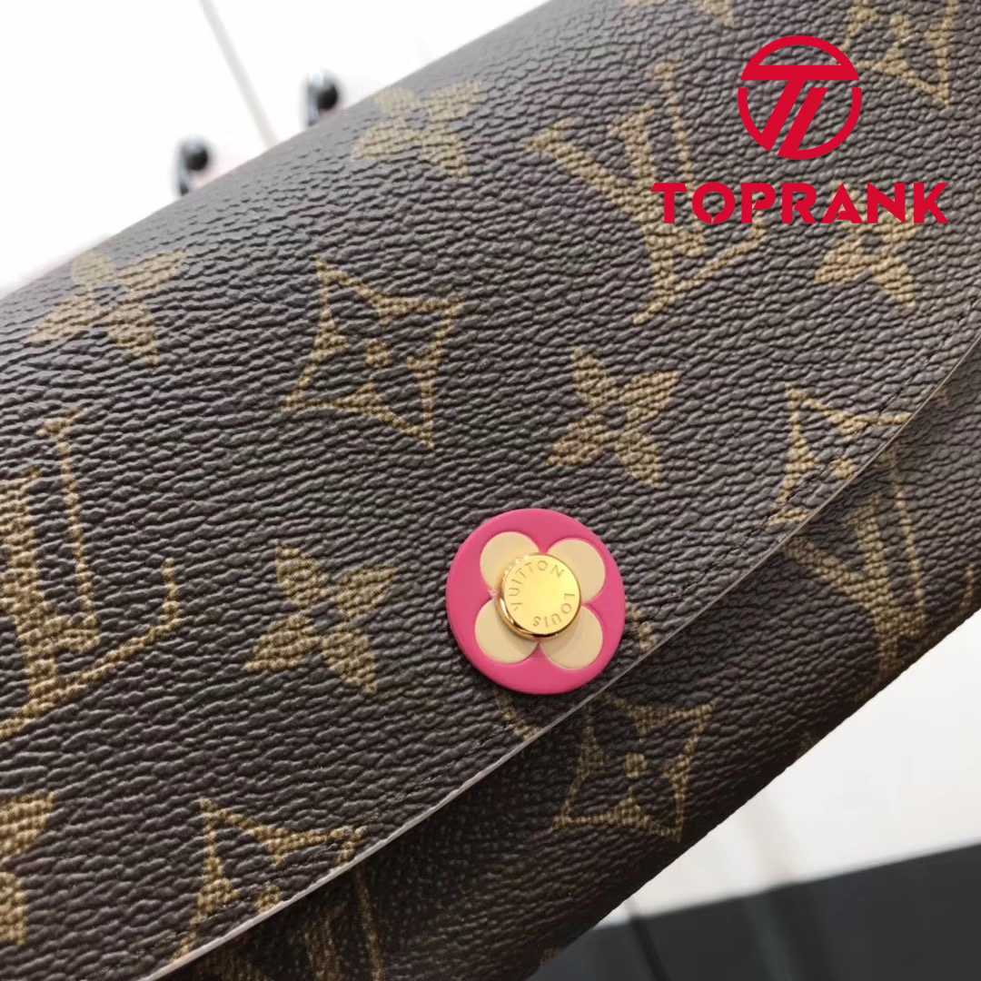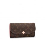 Stylish and practical, Louis Vuitton’s classic Emilie Wallet is given a delicate, feminine feel by pink leather trim and a cute Monogram flower press stud and charm.