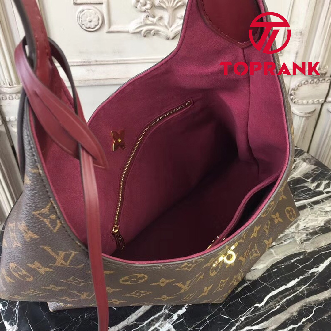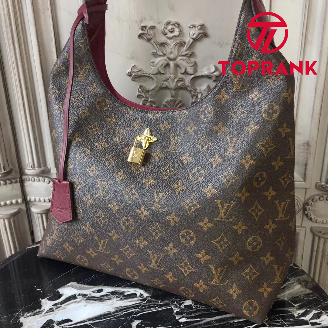This casual-chic hobo style in the Maison’s iconic canvas features a Monogram Flower padlock in shiny golden metal