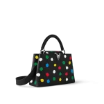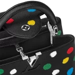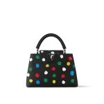 The LVxYK Capucines MM is an arty update of a classic bag. Part of the new Louis Vuitton x Yayoi Kusama collection, it features the renowned Japanese artist’s signature dots in a rainbow of colors, screen-printed on supple black Taurillon leather. And inside it has a zipped pocket with a pull shaped like a pumpkin – another of Kusama’s emblematic themes.