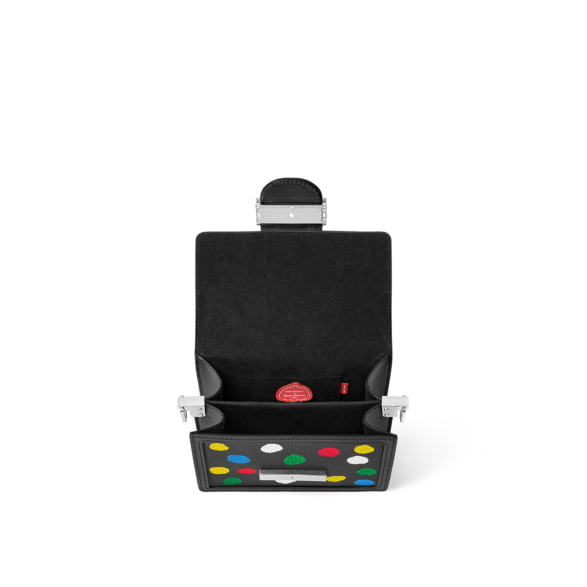Created for the new Louis Vuitton x Yayoi Kusama collaboration, the LVxYK Dauphine Mini comes bedecked with a constellation of dots, a recurring theme in the acclaimed Japanese artist’s work. Styled after the colorful dots that Kusama hand-painted on a trunk a decade ago after her first partnership with the House, the pattern is screen-printed on black Taurillon leather using a sophisticated technique that produces a 3D relief effect.