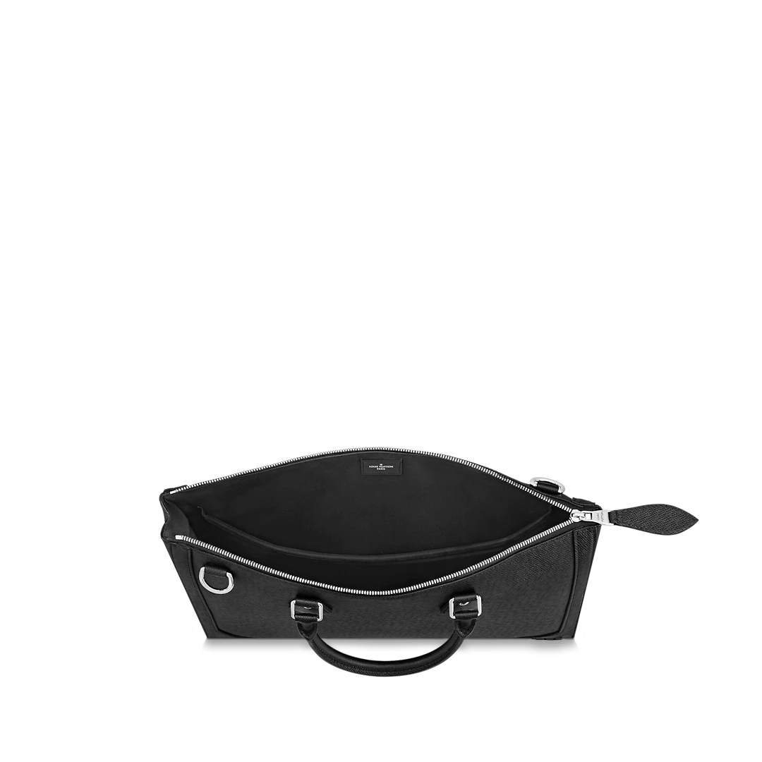 The new Slim Briefcase in richly textured Taiga leather offers a sleek, stylish alternative to the classic attaché case. And it’s brimming with sophisticated details, like the reinforced corners recalling Louis Vuitton’s historic trunks, accented with the LV initials in tone-on-tone metal. Ultra-practical with its adjustable strap, it even has a special protective laptop compartment.