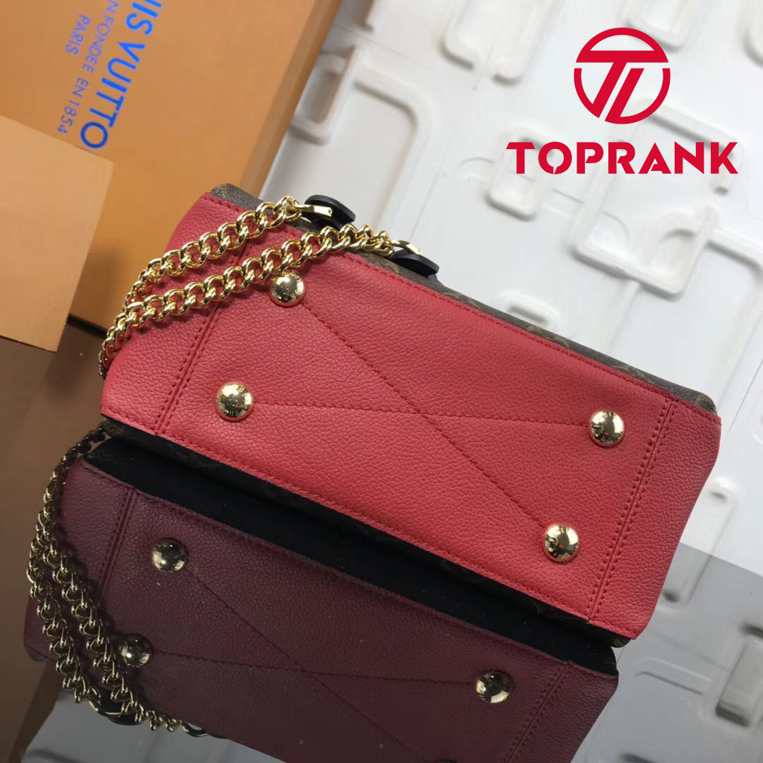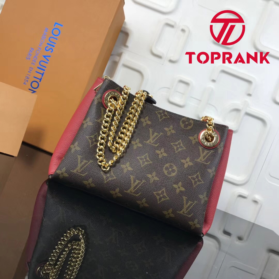 The Surene BB handbag in Monogram canvas and grained calf leather with a gold-color sliding chain is Louis Vuitton’s new chain bag. Its sleek shape is enlivened with gold-color hardware and the generous use of leather trim. The perfect casual-chic bag, it is lightweight, versatile, body-friendly and easy to wear.