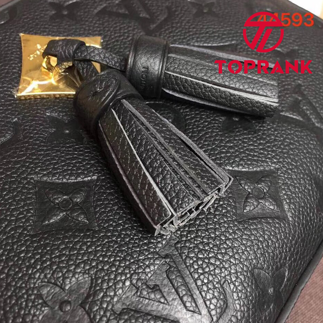 Fashioned from embossed Monogram Empreinte leather, this edition of the Saintonge handbag is detailed with playful tassels and shiny golden hardware. Sized to fit a woman’s daily essentials, this compact model transitions easily from day to evening, either carried by the supple top handle or suspended from the adjustable shoulder strap.