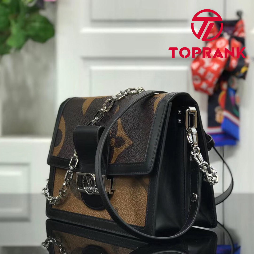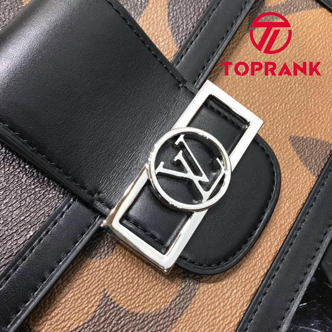 Inspired by a 1970s model from the House archives, the Dauphine bag is made from a modern mix of Monogram and Monogram Reverse canvas, trimmed with edgy black calf. It features a bold, golden LV closure and a chain strap that can be worn two ways. On-point and practical, the MM size holds all the essentials.
