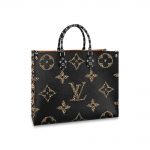 The Onthego tote bag takes on a bold new look in coated canvas with a print combining multiple sizes of the Monogram motif with leopard and zebra skin patterns. Its generous capacity, removable shoulder straps, and top handles make the Onthego perfect for everyday use.