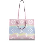 Fashioned from Monogram Giant canvas, the Onthego tote bag is as striking as it is practical. Onthego large Tote bag follows the traditional Japanese dyeing process, knotting, folding and dyeing the fabric, showing the fresh beach interest of the LV Escale series in the summer of 2020. With its generous capacity, shoulder straps and iconic Toron top handles, this versatile GM model is an ideal bag for everyday wear.