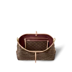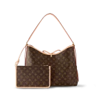 Louis Vuitton launches the CarryAll MM handbag in Monogram canvas with natural leather trim. Its contemporary, body-friendly design and roomy interior make this a fantastic everyday bag. Inside zipped pockets and a removable zipped pouch deliver even more functionality. A gold-color buckle allows the handle to be shortened or lengthened.