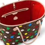 The spacious and elegant LVxYK Neverfull MM tote joins the “Painted Dots” theme as part of the new Louis Vuitton x Yayoi Kusama collaboration. Monogram canvas is decorated with the renowned Japanese artist’s signature dots, a unifying element in her work. A complex screen-printing process gives the colorful dotted pattern a 3D relief effect, adding a burst of vibrant energy to a practical carryall.