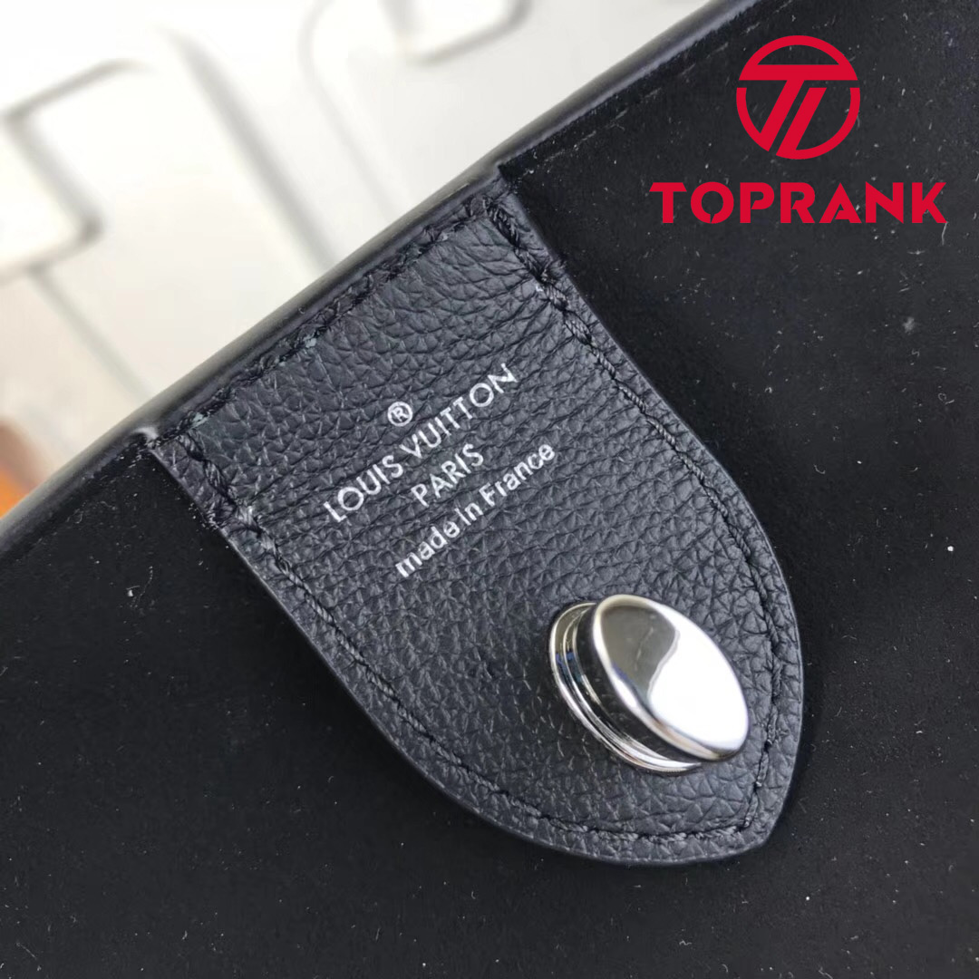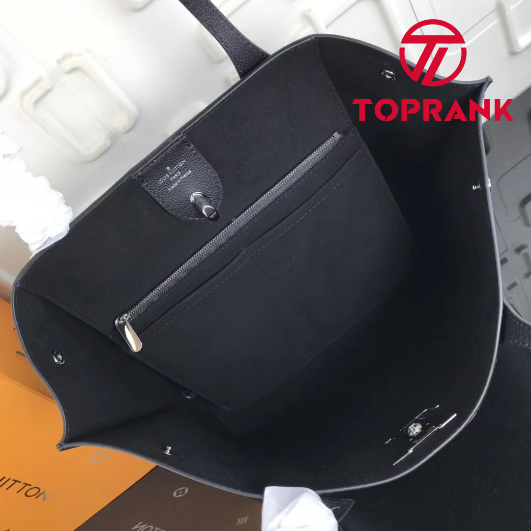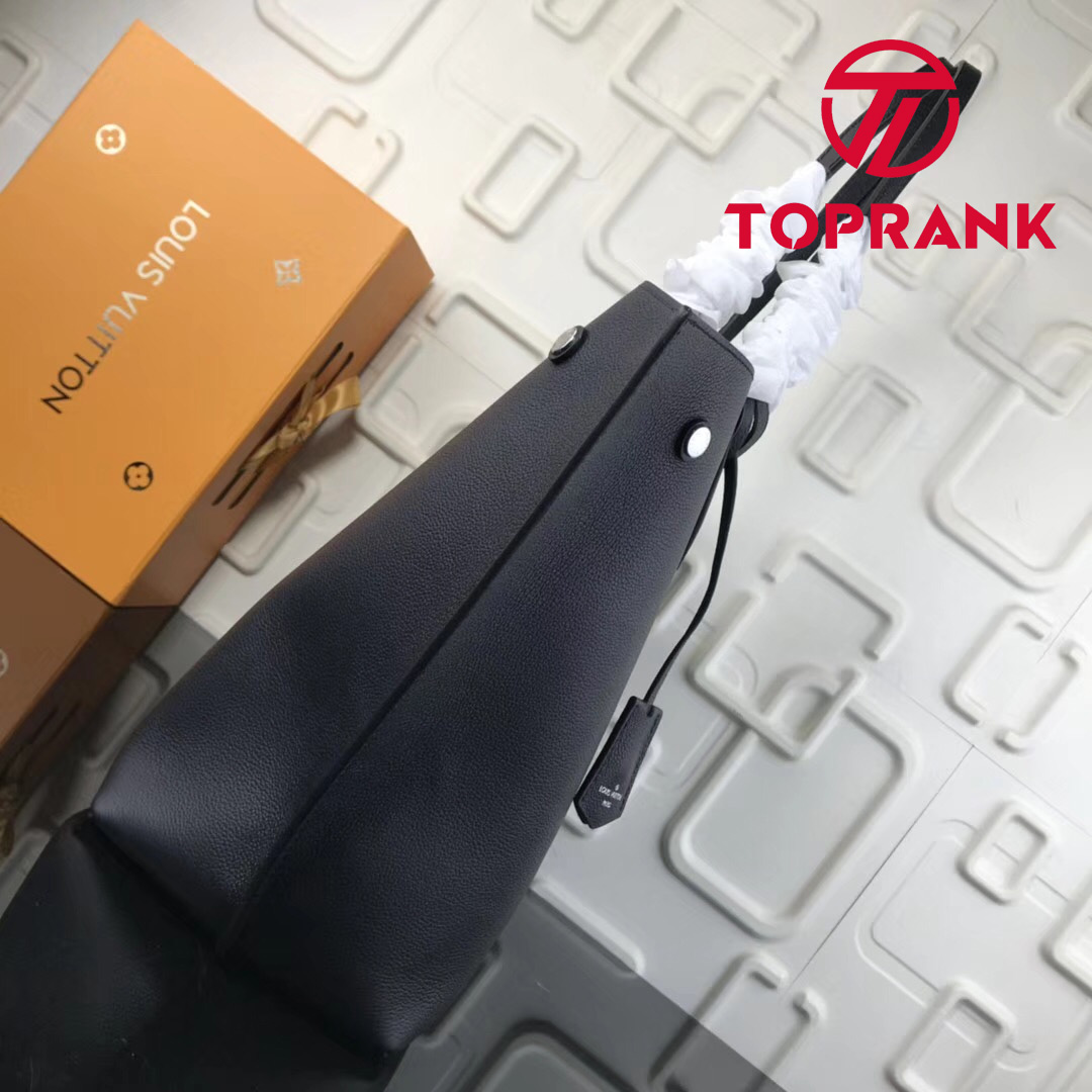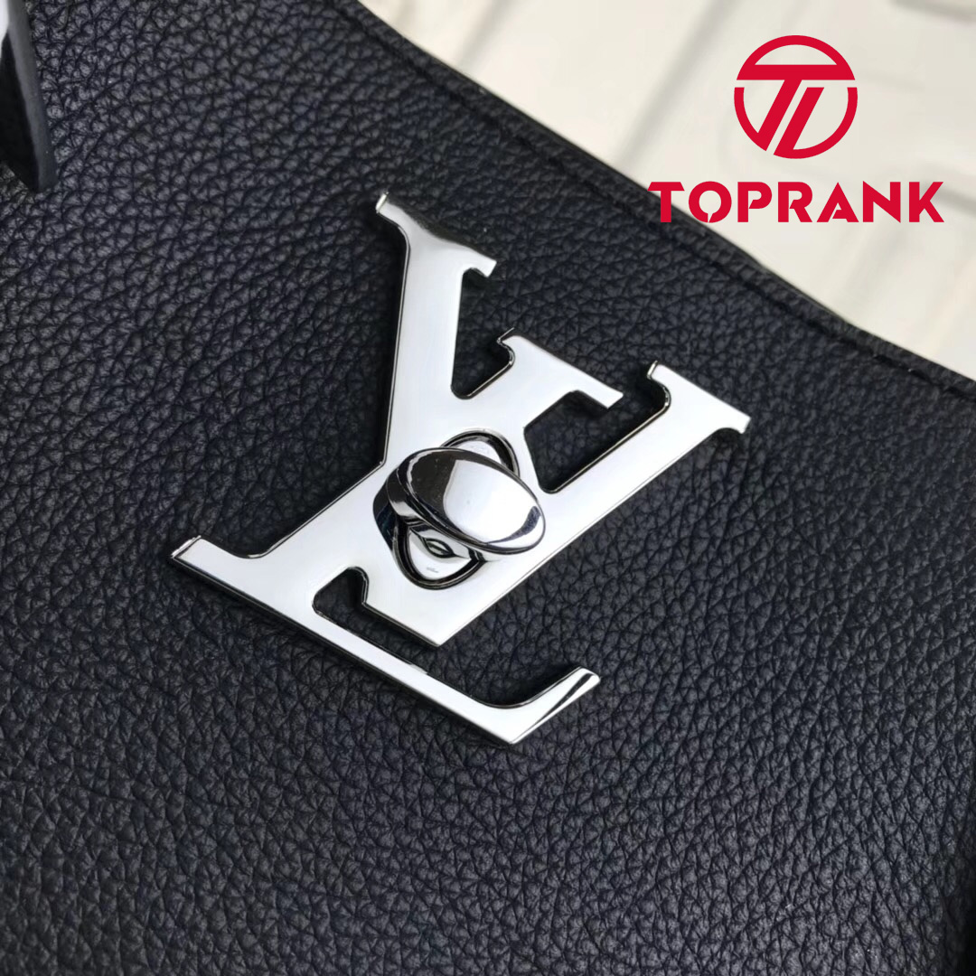 Dedicated to the elegant, active woman, this Lockme Go tote offers both flawless functionality and uncompromising style. Crafted from soft, grained calfskin, with double handles designed for comfortable over-the-shoulder wear, this essential modern carry-all is accented with a silvery LV turn lock and two snap buttons to keep belongings secure.