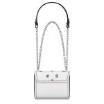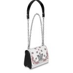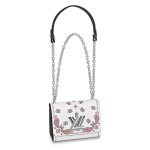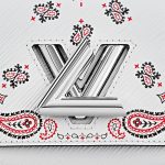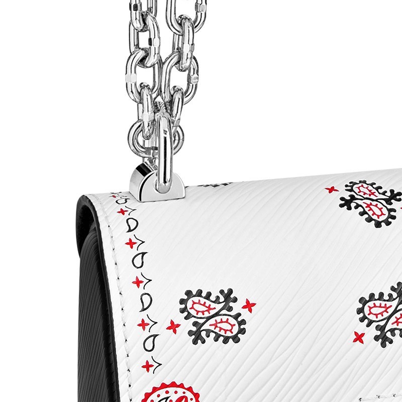 Louis Vuitton reinvents the flowers and arabesques of classic paisley on this Twist PM handbag. Printed on the supple Epi leather, the bandana-inspired pattern complements the bag’s classic lines. The silver-color LV twist-lock opening and sliding chain anchor the bag in glamourous Twist territory.