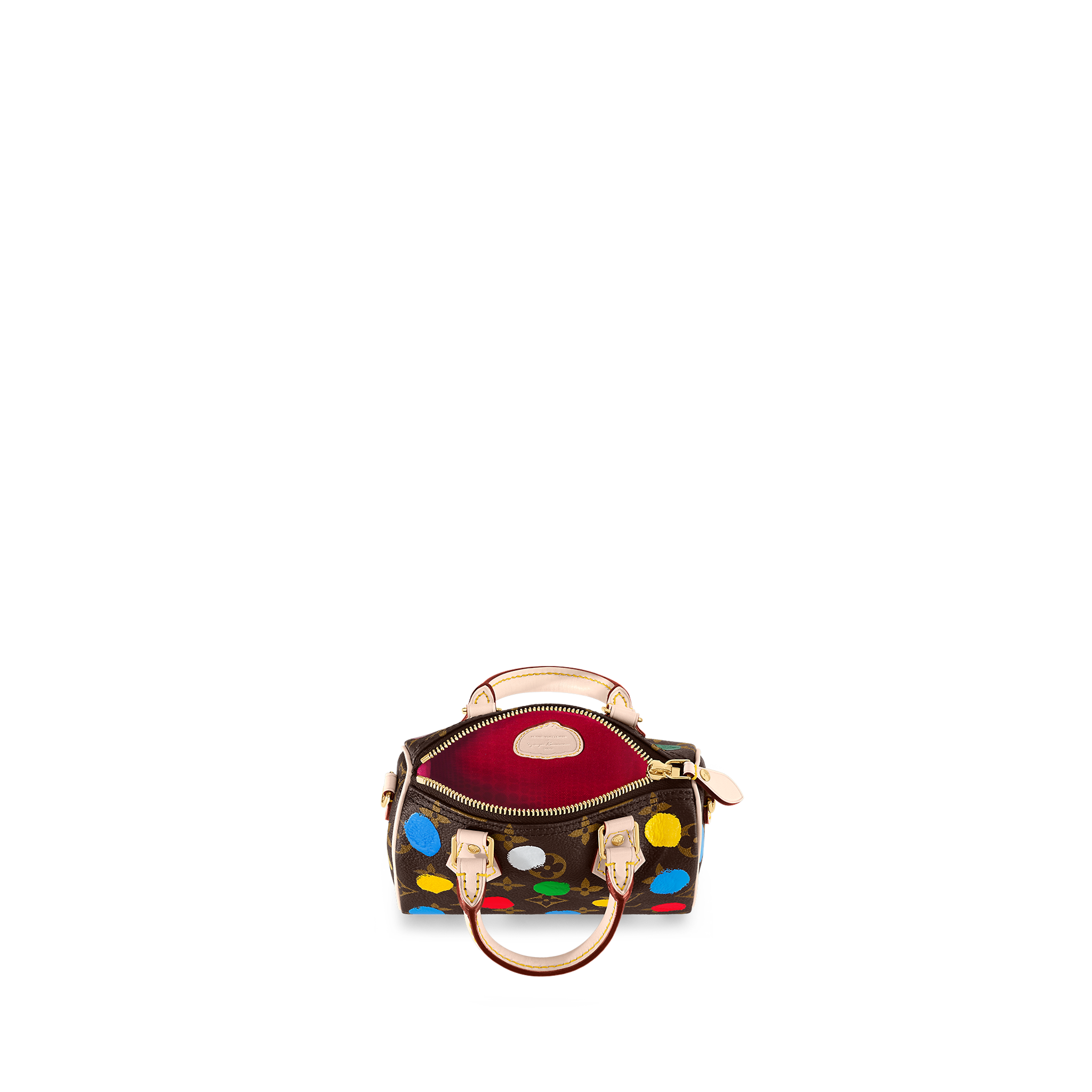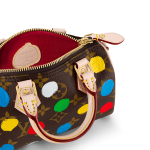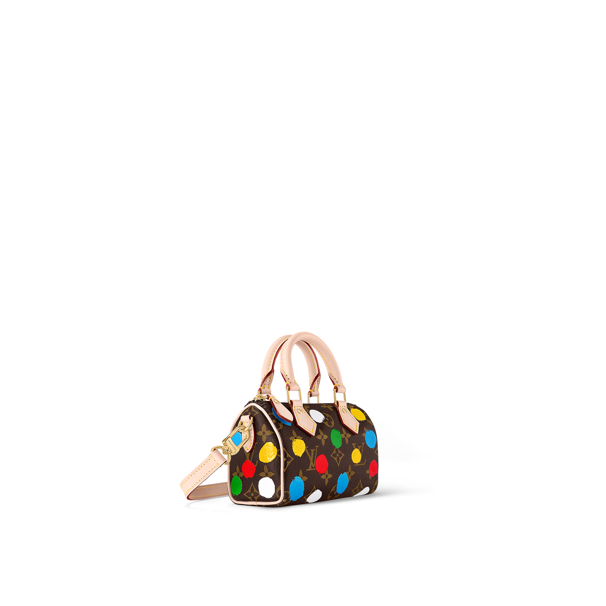 The LVxYK Nano Speedy joins the celebration of art and craftsmanship as part of the Louis Vuitton x Yayoi Kusama collection. The venerated Japanese artist has used dots as a recurring visual theme throughout her career. For this user-friendly clutch, the House’s signature Monogram canvas is enlivened with colorful dots, screen-printed with a 3D hand-painted effect. A chic accessory with an upbeat, arty look.