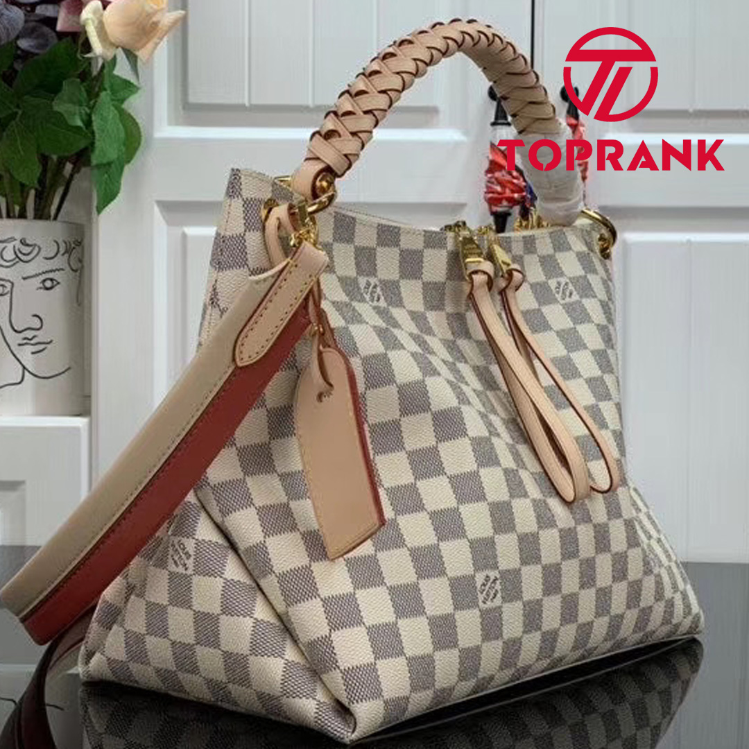 The Beaubourg Hobo MM bag in Damier Azur coated canvas sports an exquisite braided top handle for Summer 2020. The two-tone removable strap and hand-painted edge-dying on the top handle’s braided leather perfectly complement the bag’s sophisticated lines. It looks as good on the elbow as over the shoulder.