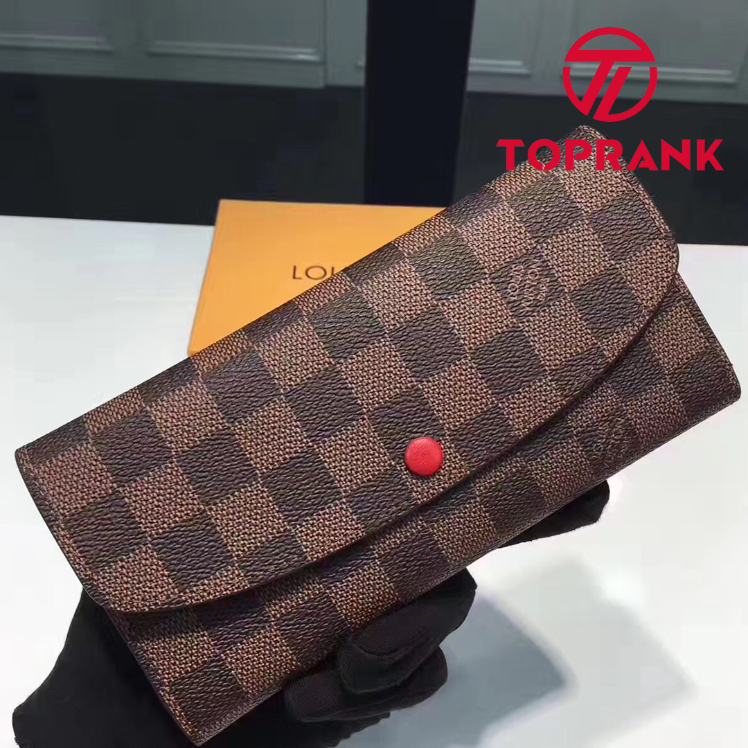 Proving that functionality and beautiful design can go together, the Emilie Wallet is elegance itself in supple Damier Ebene canvas with a fresh lining color. Numerous pockets and an attractive shape make it irresistible.