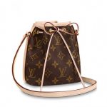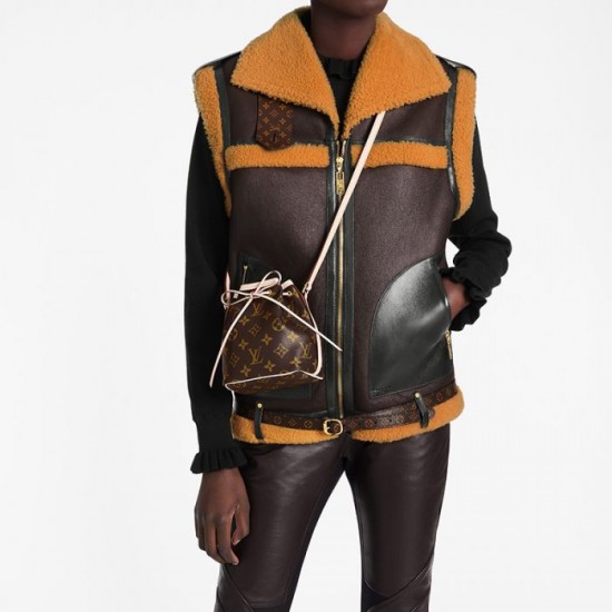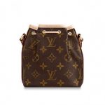 The Nano Noé in Monogram canvas is a miniature version of the famous NéoNoé, which was inspired by Gaston-Louis Vuitton’s 1932 design for a bag holding five bottles of champagne. The lightweight Nano Noé holds essentials like a smartphone, wallet and keys. It can be worn on the shoulder or across the body.
