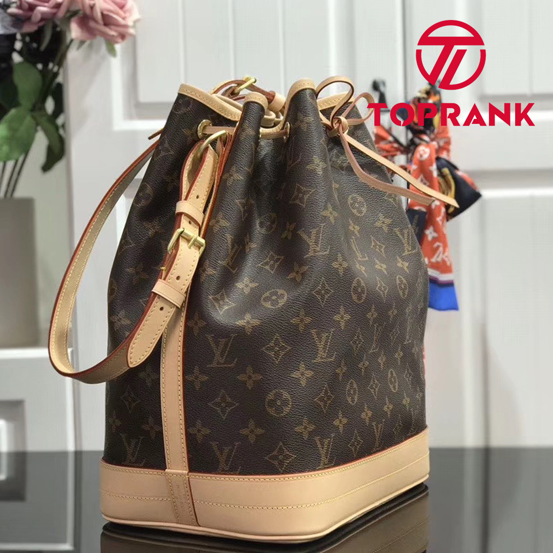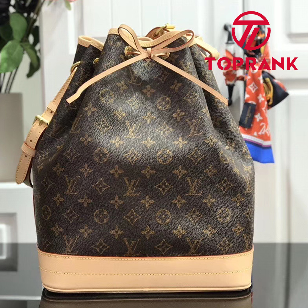 The Noé bucket bag harks back to a design from 1932. A Champagne producer asked Gaston-Louis Vuitton to develop a sturdy, stylish bag in which he could transport five bottles of bubbly. This model in body-friendly Monogram canvas retains key features of the original – the iconic shape, generous volume, drawstring closure – but is made for modern life. The leather strap adjusts for comfortable shoulder wear.