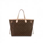 The Neverfull GM tote unites timeless design with heritage details. Made from supple Monogram canvas with natural cowhide trim, it is ultra-roomy but never bulky, with side laces that cinch for a sleek allure or loosen for a more casual look. Slim, comfortable handles slip easily over the shoulder or arm. Lined in colorful textile, it features a removable pouch which can serve as a clutch or an extra pocket.