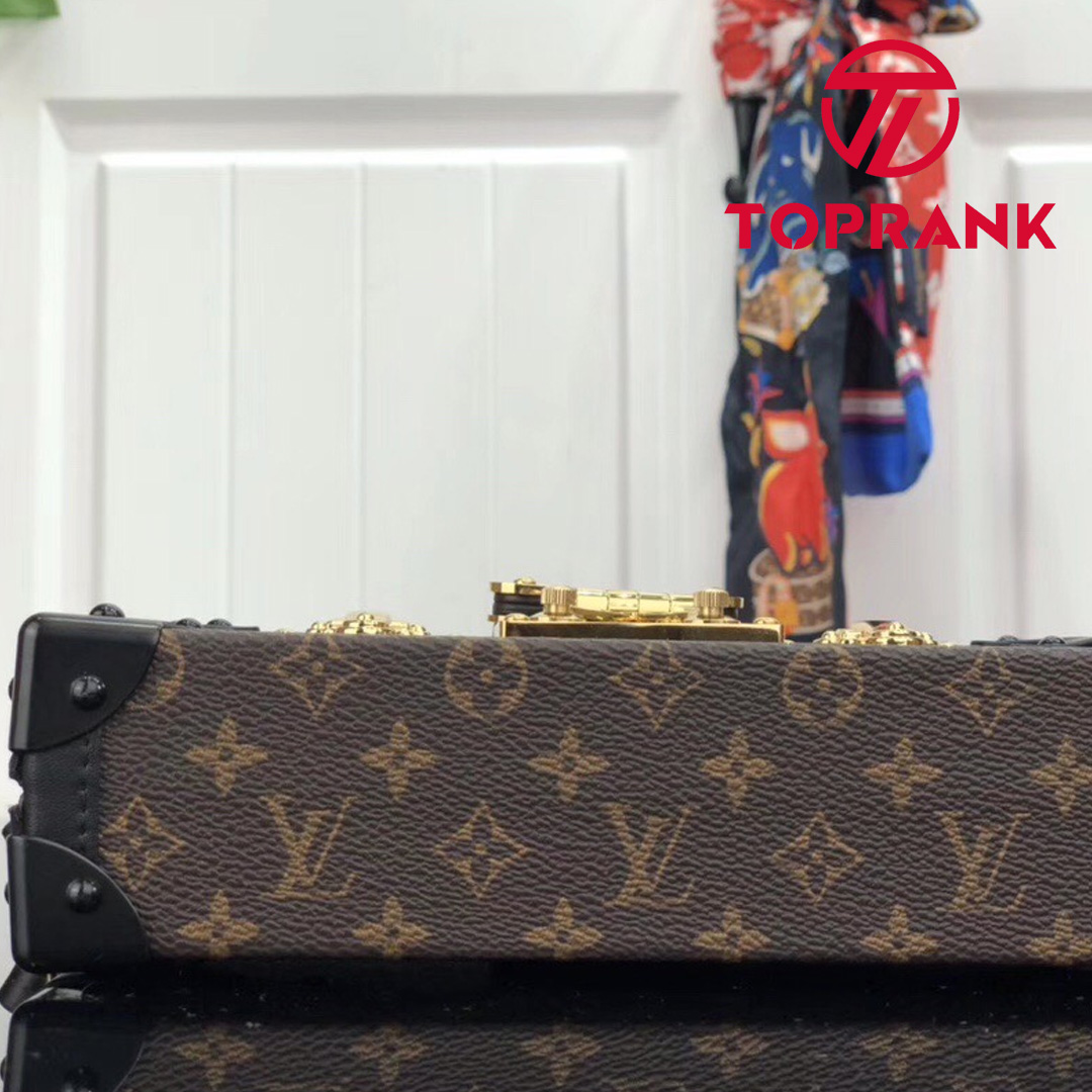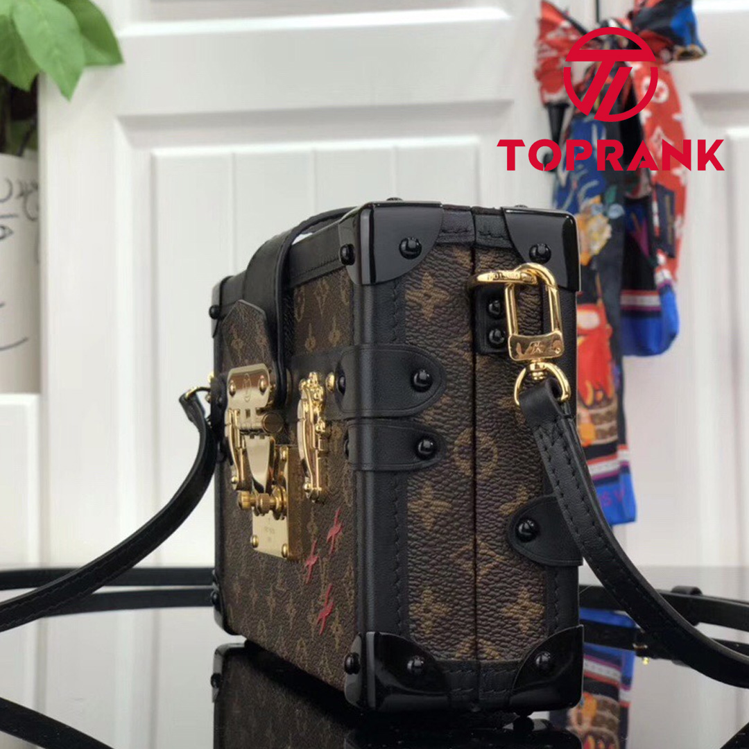 Every detail of the Petite Malle handbag is inspired by the history of Louis Vuitton trunks: the shape, the Damier Ebene canvas, the gold-tone lock and fittings – even the sheepskin lining reprises a classic House motif. Impeccably crafted, with smooth calfskin trim, this fashionable “little trunk” travels easily from day to evening. It can be carried as a clutch or attached to its adjustable strap for cross-body wear.
