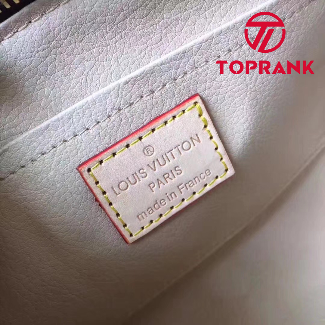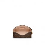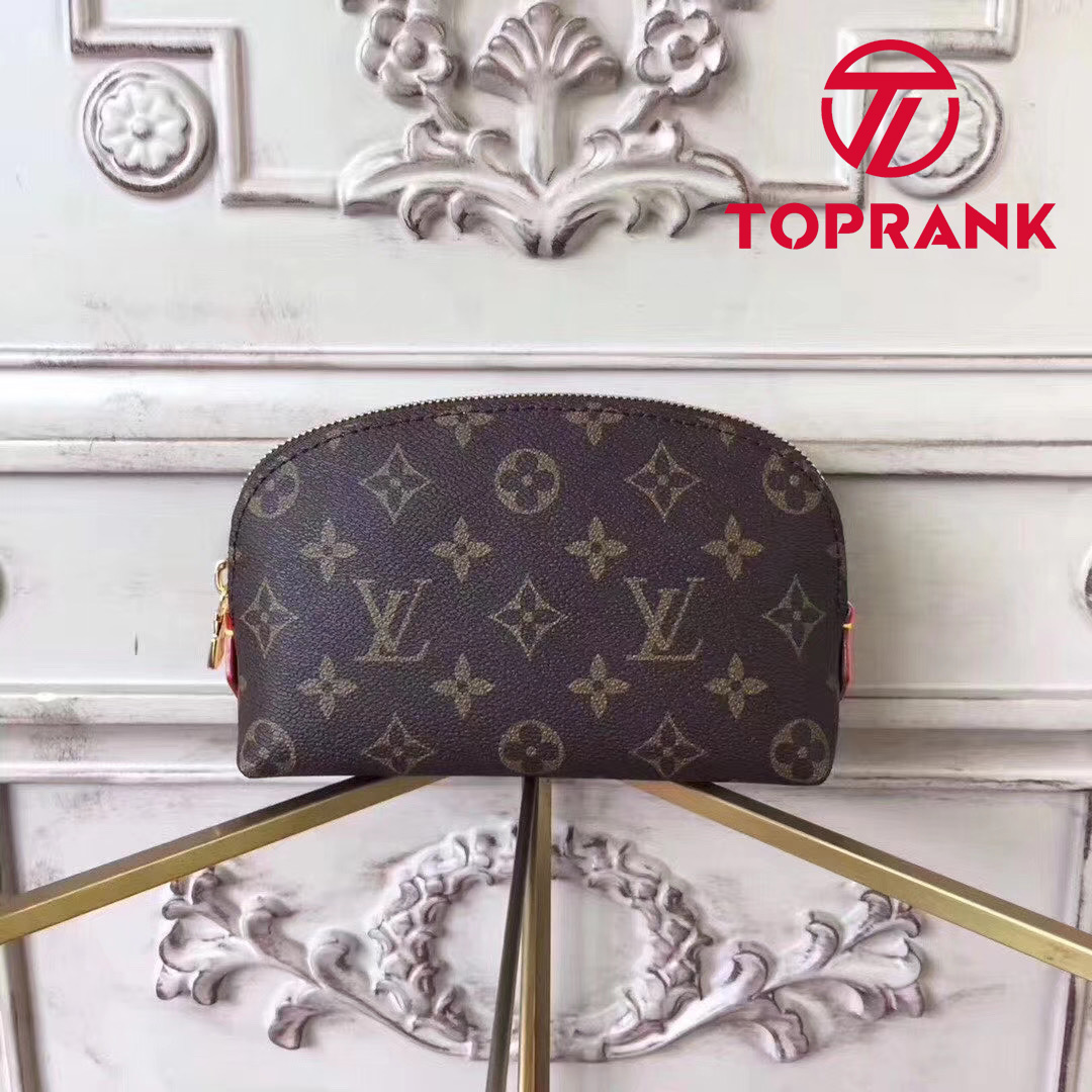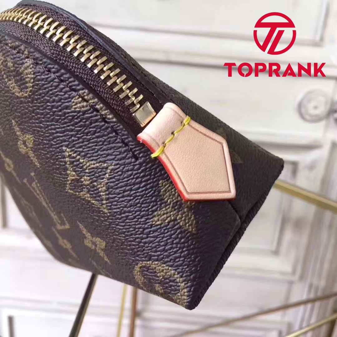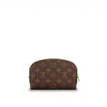 This compact cosmetic pouch in Monogram canvas slips easily into a handbag or suitcase. Its round shape and flat base facilitates access to small products.