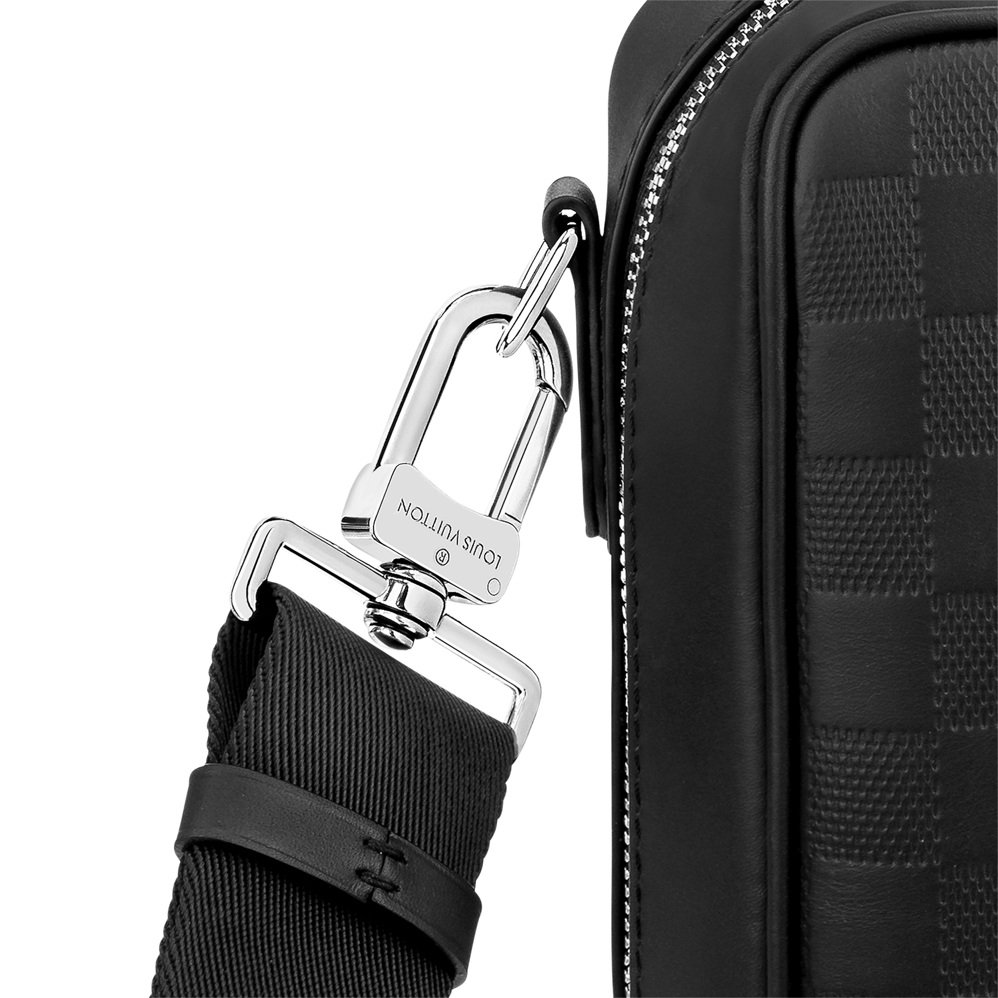 Although slim, the Sirius Messenger bag in Damier Infini Onyx cowhide leather has a wide opening for easy access to belongings inside. A removable and adjustable shoulder strap enables the bag to be worn on the shoulder or across the body. The D-ring to which the leather name tag is attached adds an unexpected twist.Product details10.6 x 7.1 x 2.8 inches(length x Height x Width)Damier Infini Onyx cowhide leatherTextile liningCowhide-leather trimSilver-color hardwareZip closureName tag with D-ring2 inside compartments separated by an internal zipped pocketInside flat duo pocketStrap:Removable, adjustableStrap drop: 14.6 inchesStrap drop max: 27.2 inchesChain:Z01