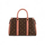 The fashionably petite Soufflot BB is crafted from supple Monogram canvas, with gussets and trim of rich, colored leather and a coordinating colored lining. With its vertical bands and name tag, it nods to the Keepall, a House icon. Refined and timeless, it can be carried cross-body, on the shoulder, by hand, or in the crook of the arm.