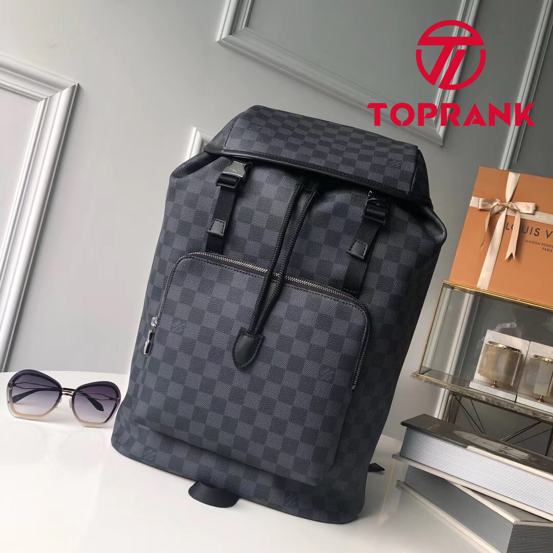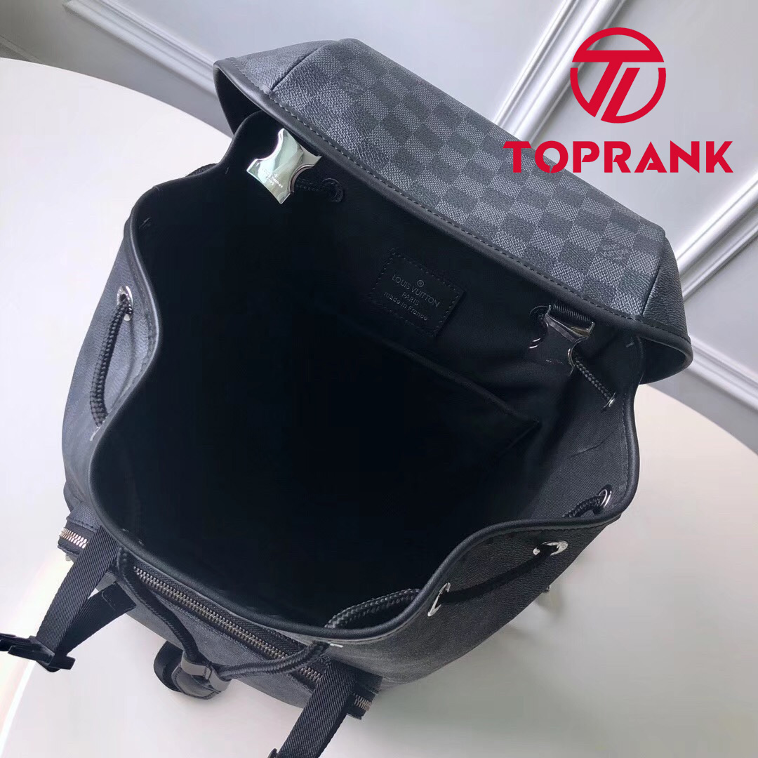 The sporty Zack Backpack in coated canvas has a roomy interior and a classic Louis Vuitton look. The flap, drawstring closing, and metal buckle evoke so many the House classics.45 x 30 x 20 cm(Length x height x width)17.6 x 11.7 x 7.8 inchesCoated canvas exteriorTextile liningCowhide leather trimSilver colored metallic piecesTop handle2 Leather shoulder strapsFlap + drawstring opening + buckle1 Internal padded compartment1 Internal double flat pocket