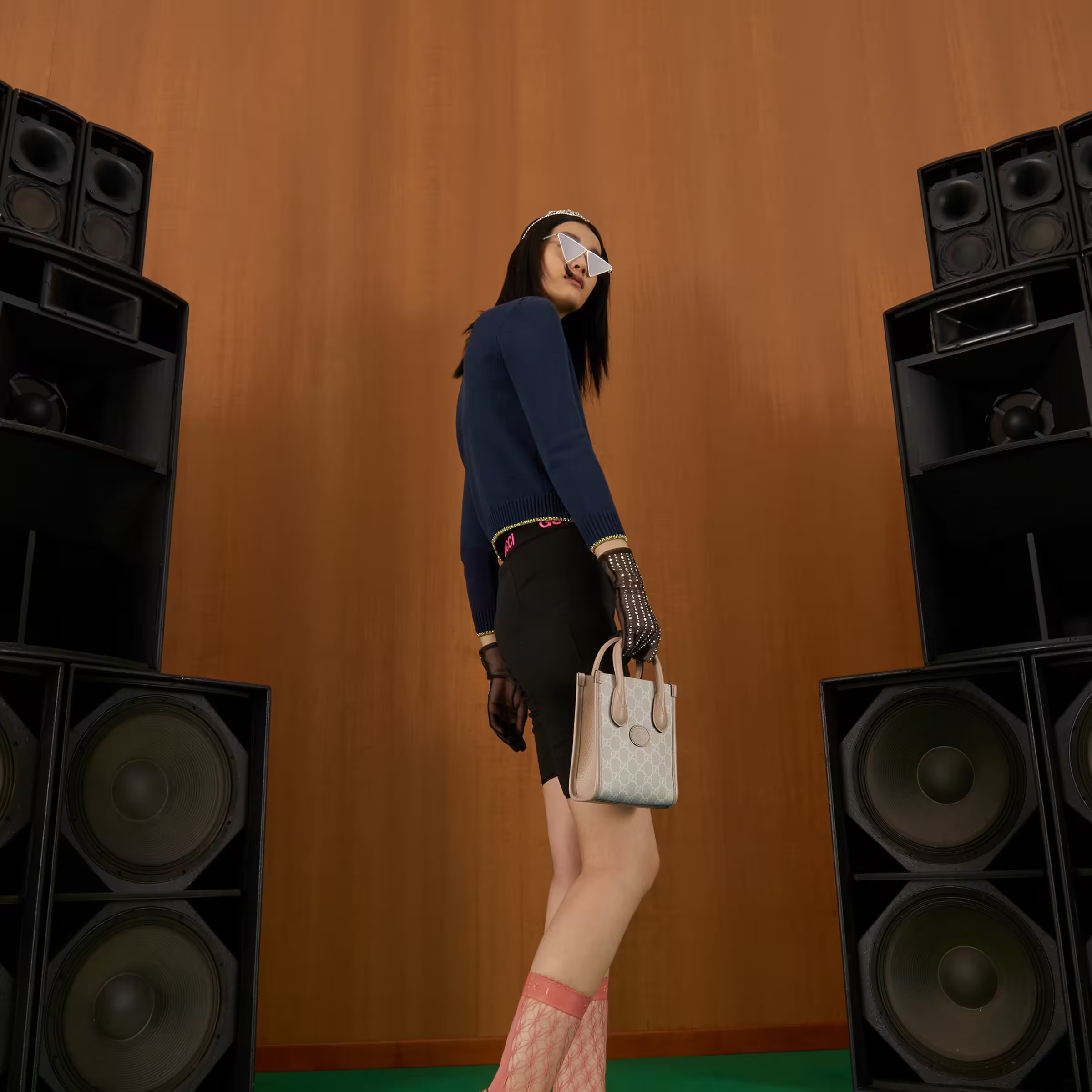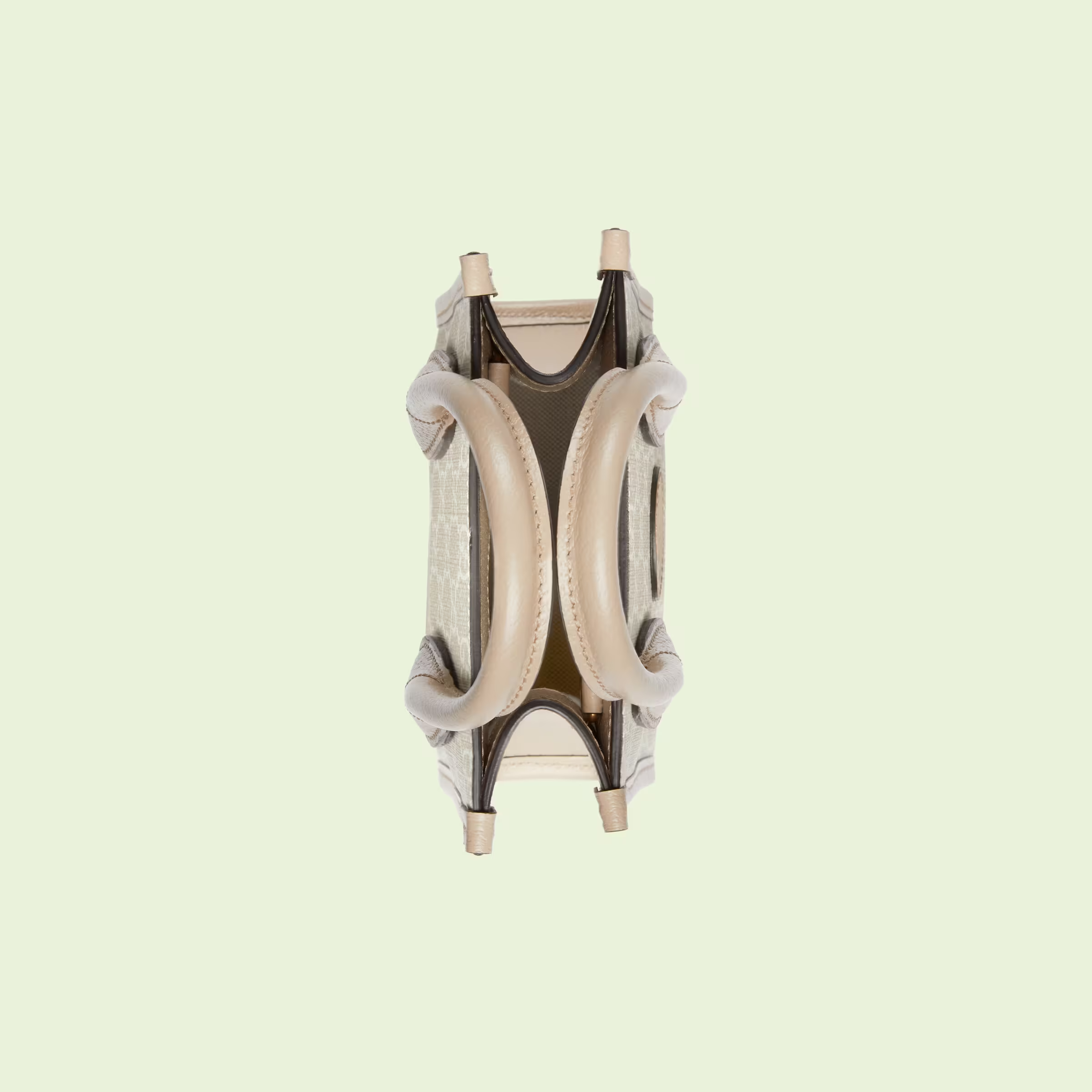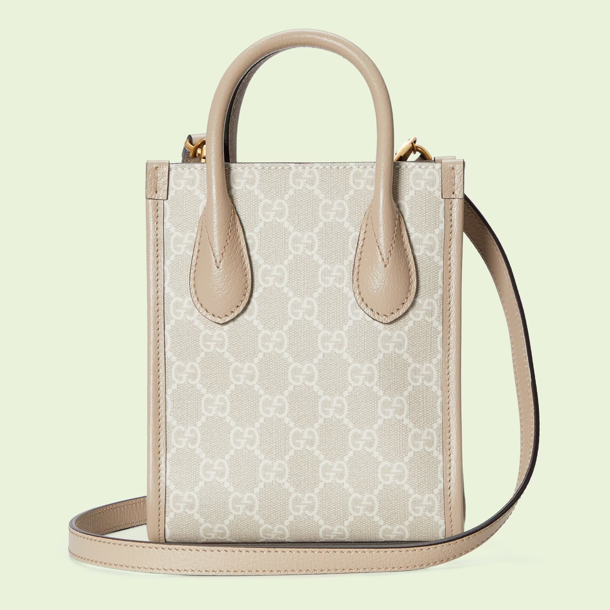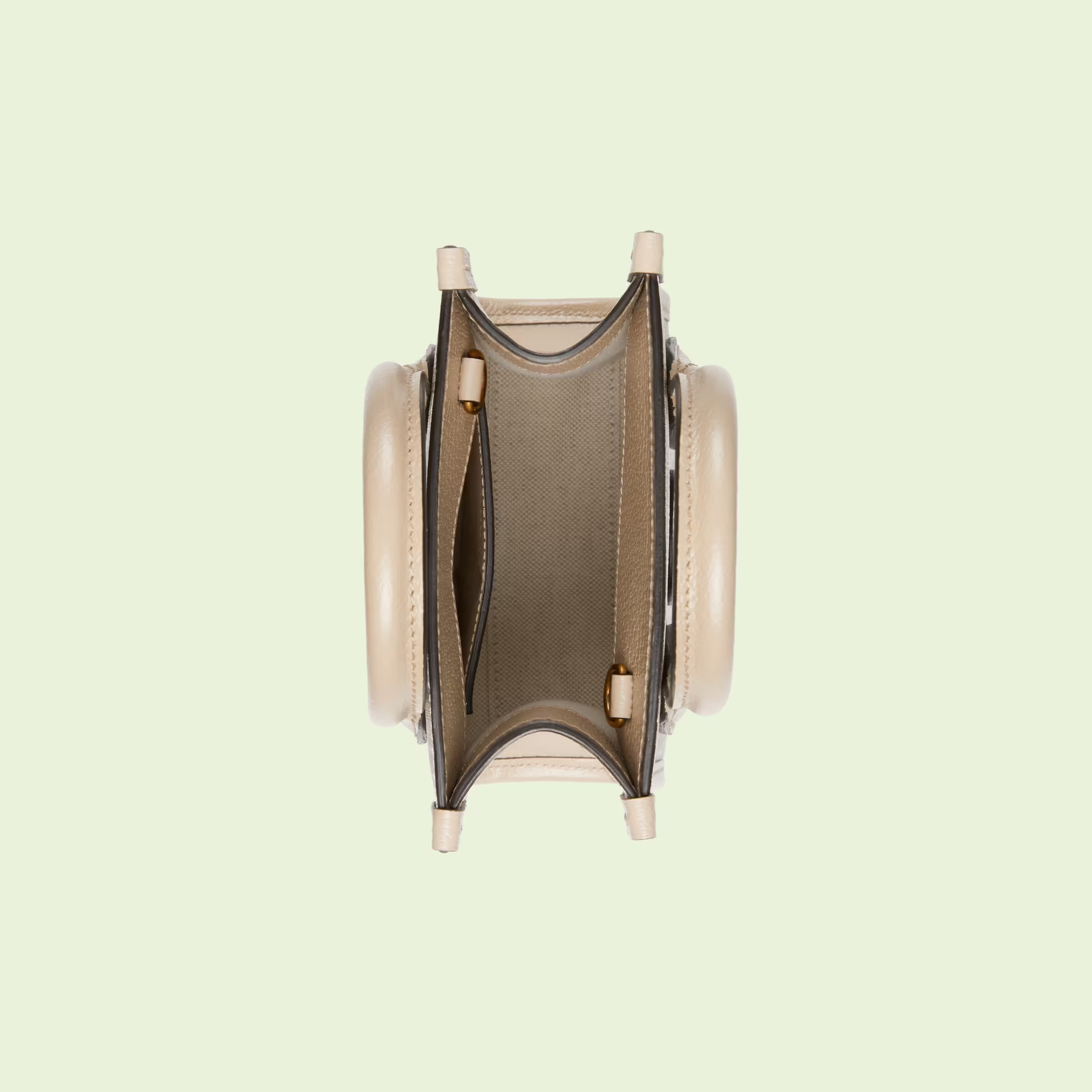 An archival design from the 1930s inspired the GG Supreme canvas, now one of the House’s most emblematic materials. Traditionally presented in beige and ebony, it appears here in a beige and white combination, an ode to timeless pieces and everlasting design. The mini tote bag is complete with an oatmeal leather trim and an Interlocking G tag.