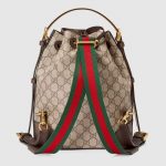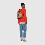 A drawstring backpack with a bucket shape made in soft GG Supreme, crafted from a coated microfiber fabric. The back shoulder straps come with a mechanism that allows them to be released and adjusted to be worn as a shoulder strap. The contrast handle pays homage to the House’s past, when artisans would repair luggage by replacing worn handles with new ones in any colors that were available.
