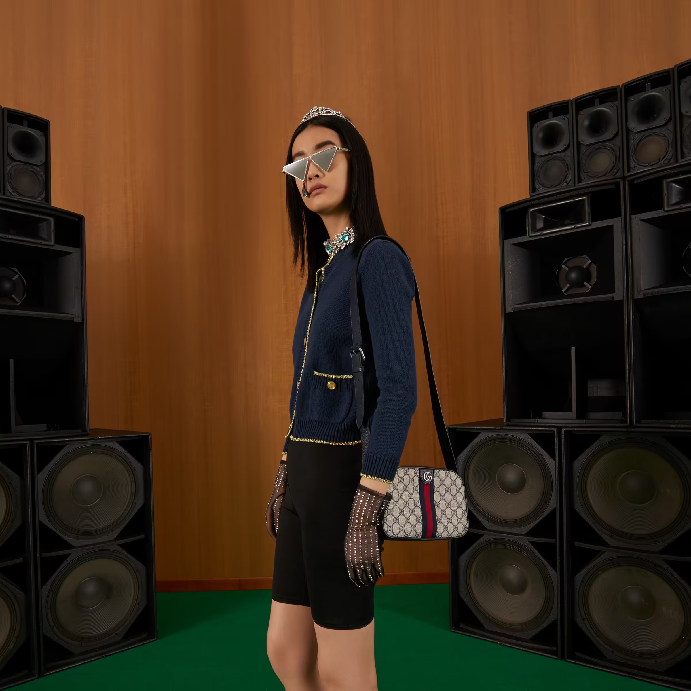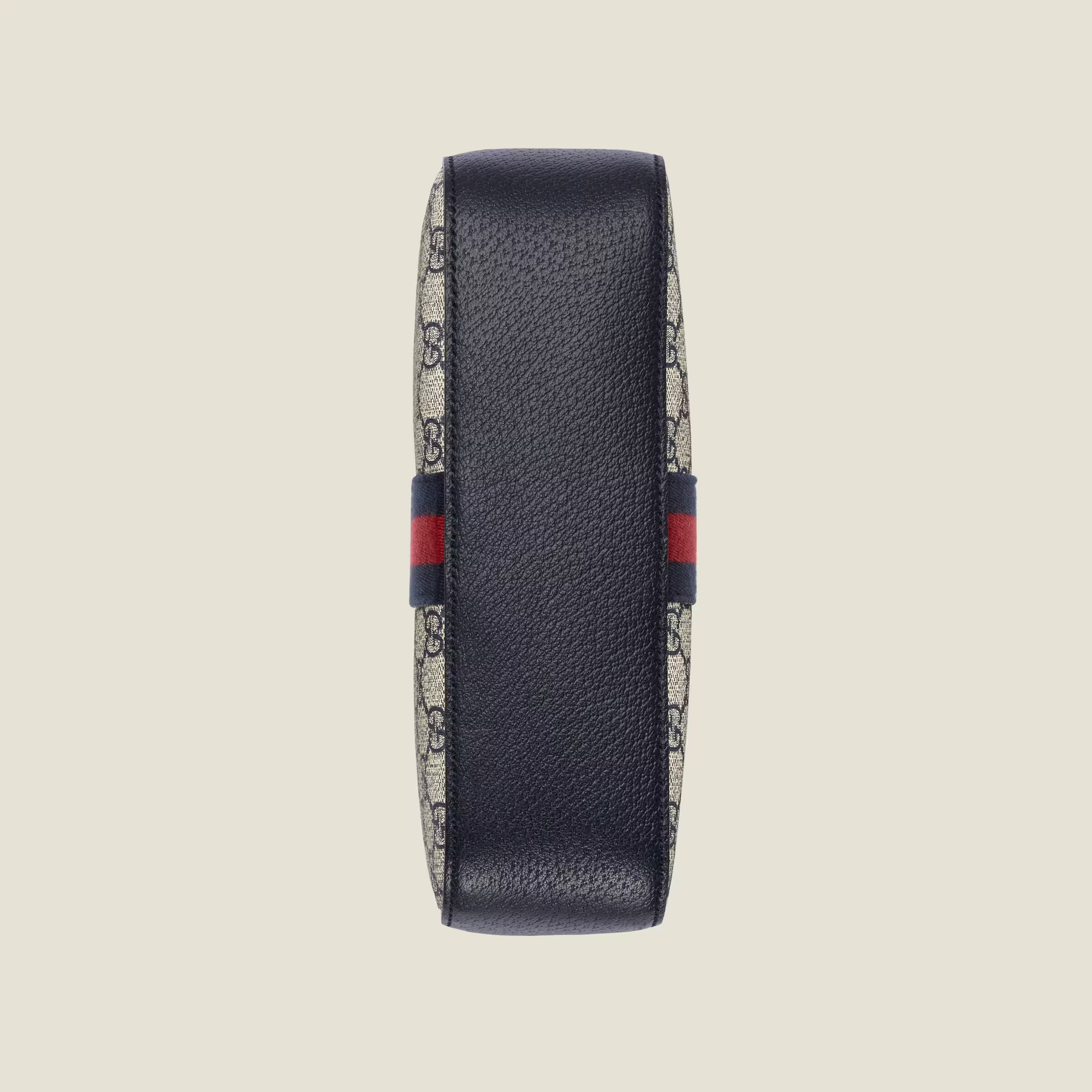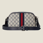 Mirroring the material’s historic origins, GG Supreme is introduced in a timeless mix of blue and beige for Gucci Love Parade. The canvas has come to the front of each collection decade after decade to become a hallmark of the House. Here, the classic palette defines this Ophidia camera bag.