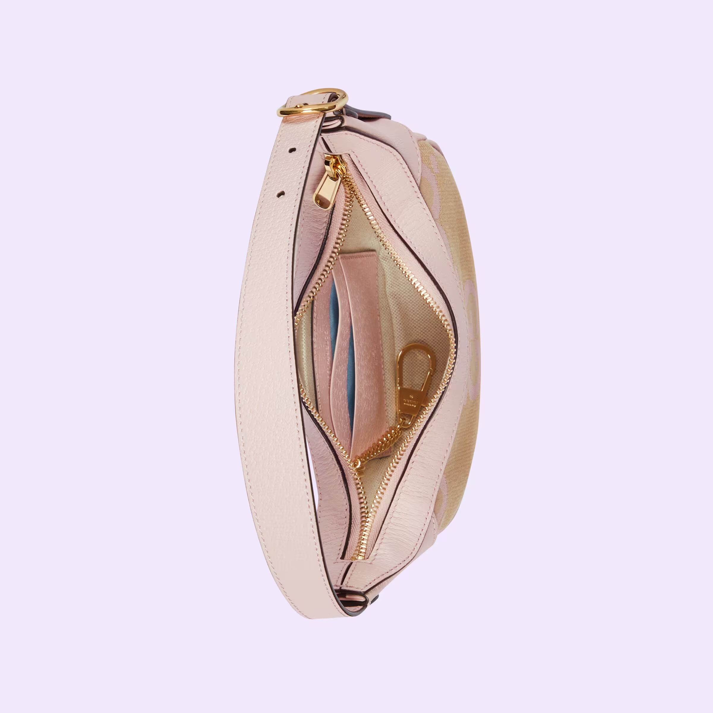 Steeped in history, the House’s monogram is reimagined in a maximalist, jumbo-sized motif. Here, it forms the foundations of this structured mini bag, enriched with a fresh color palette and a gold-toned Double G emblem.