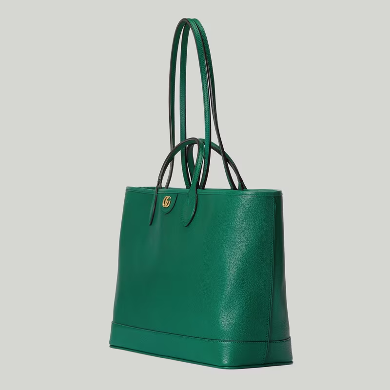 The Ophidia line continues to be one of Gucci signature handbags. New silhouettes are introduced each season, providing versatile accessories to complete any look. Two handles transform this tote bag, allowing it to be styled either as a shoulder bag or top handle. The Double G remains integral to the design, presented across a soft green leather base.