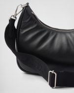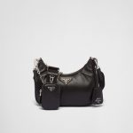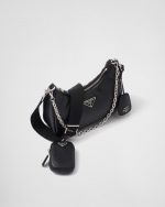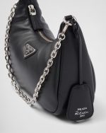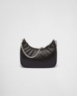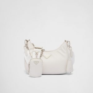 Softness and a simple silhouette define this mini handbag made of nappa leather with a padded construction. The tonal triangle logo frames the contrasting lettering logo, creating a textured, three-dimensional contrast that enhances the design of the accessory.Product code: 1BH204_2DYI_F0002_V_V9ZLight paddingDetachable chain handleDetachable, adjustable logo-webbing shoulder strap, length: 85 cmZipped, removable leather pouch and keychainMetal hardwareEnameled-metal triangle logo on the frontZipper closureNappa-leather liningHeight: 18cmLength: 6.5cmWidth: 22cm