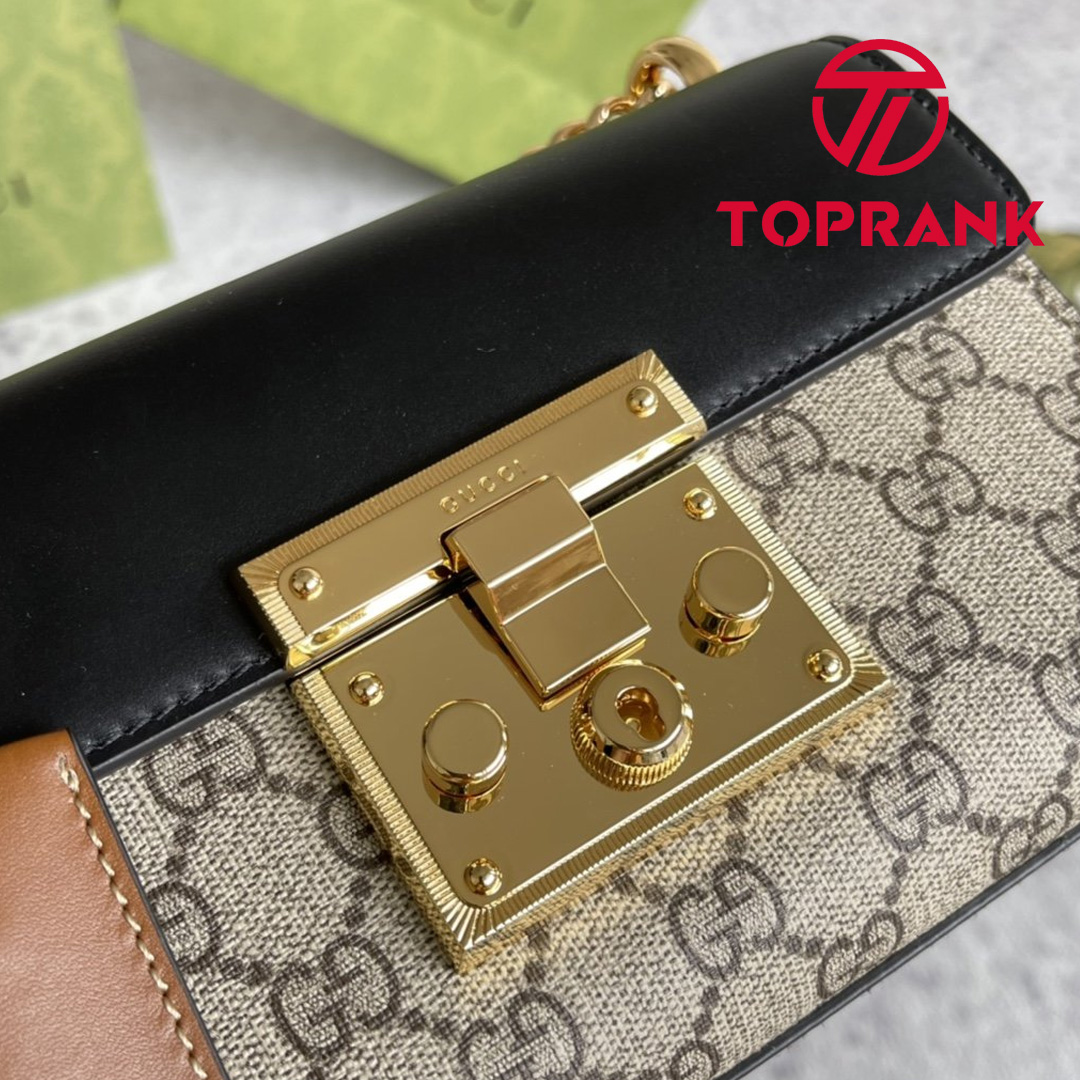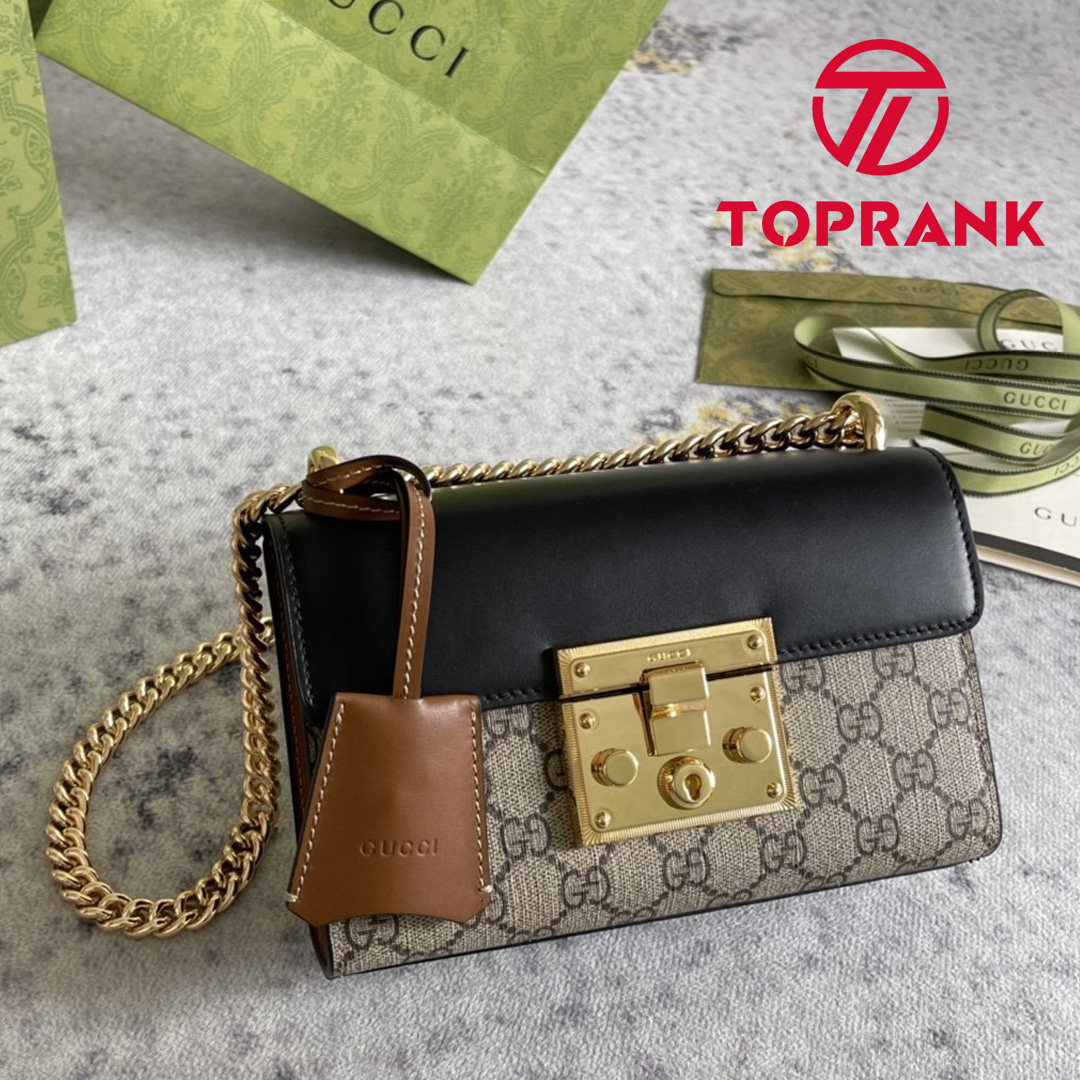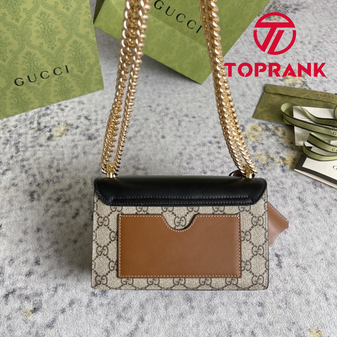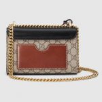 This small GG Supreme canvas shoulder bag features a leather flap and key lock closure. The sliding chain bag can be worn in a variety of ways, either on the shoulder or in the hand.