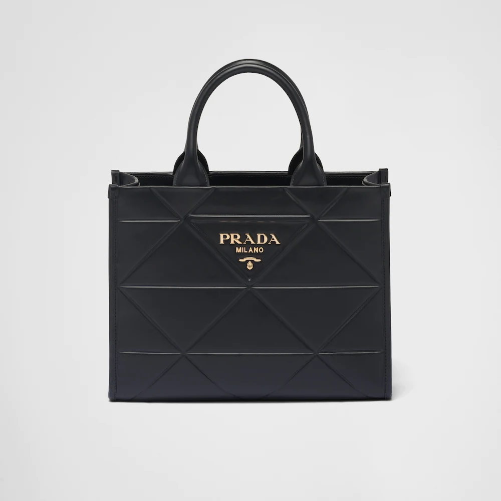 Prada Large leather shoulder bag with topstitching – Military Green/Black