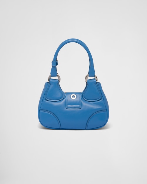 Reimagining the iconic lines of a model from the Prada archives from the 2000s, this nappa leather bag combines traditional elements reinterpreting them in a new way, with an innovative soft design. Softness and simplicity of the silhouette define this hobo bag, embellished by the ton-sur-ton triangle logo that frames the lettering logo, creating a three-dimensional and material game and enriching the design of the accessory.