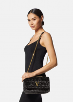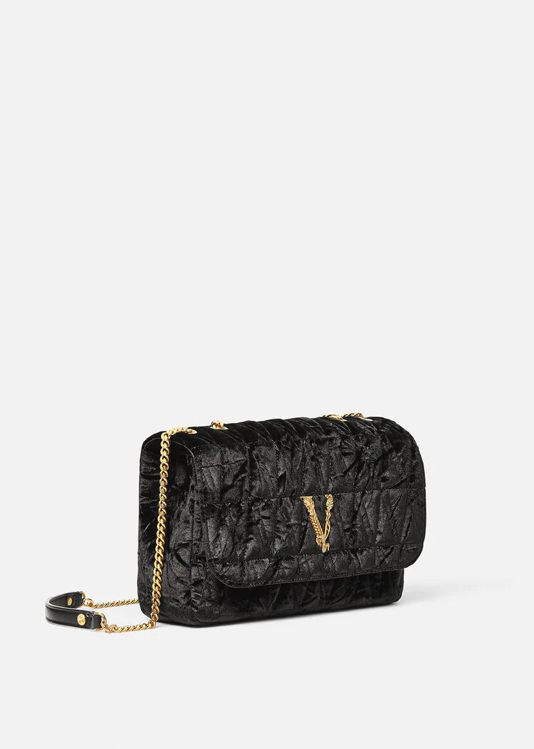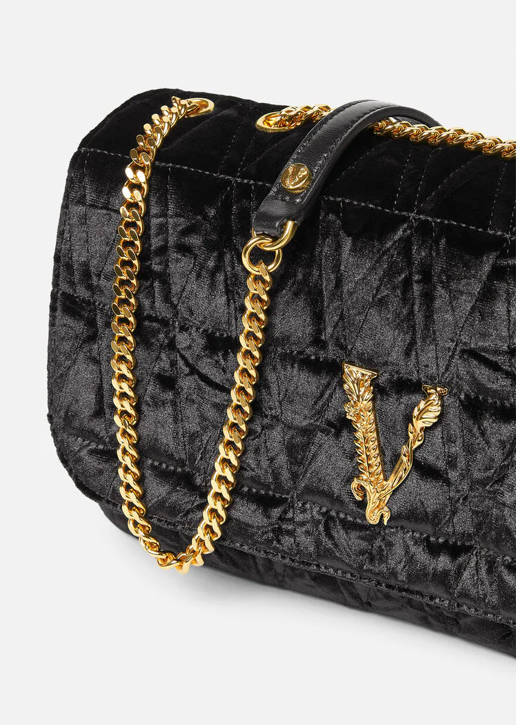 Taking its name from the Roman deity of virtue and valour, the Virtus shoulder bag is embellished with emblematic Barocco V hardware. Crafted from a soft textured, quilted velvet, the elegant style is fully lined with leather and features multiple card slots and slip interior compartments.