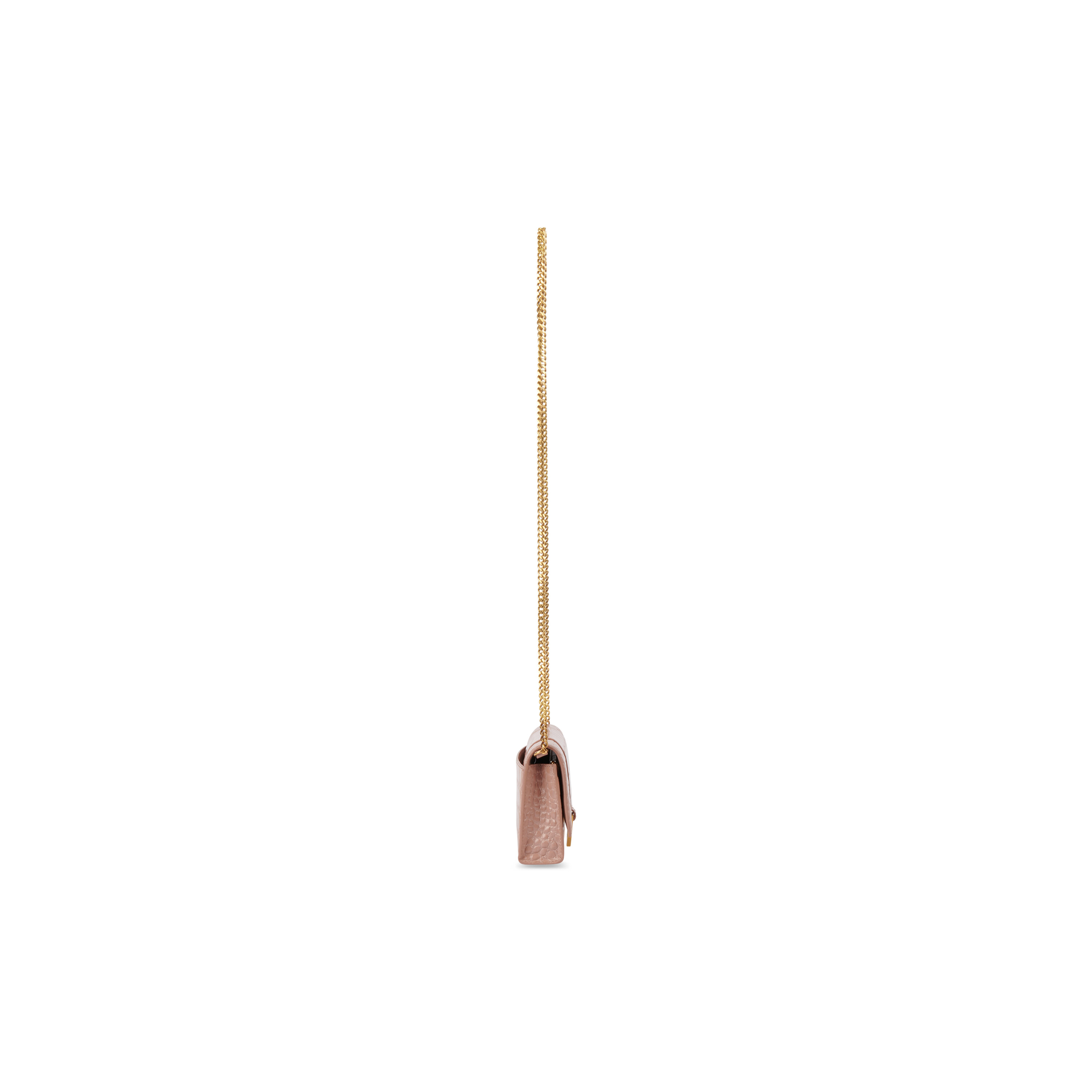 Hourglass Wallet On Chain in beige shiny crocodile embossed calfskin, aged gold hardware