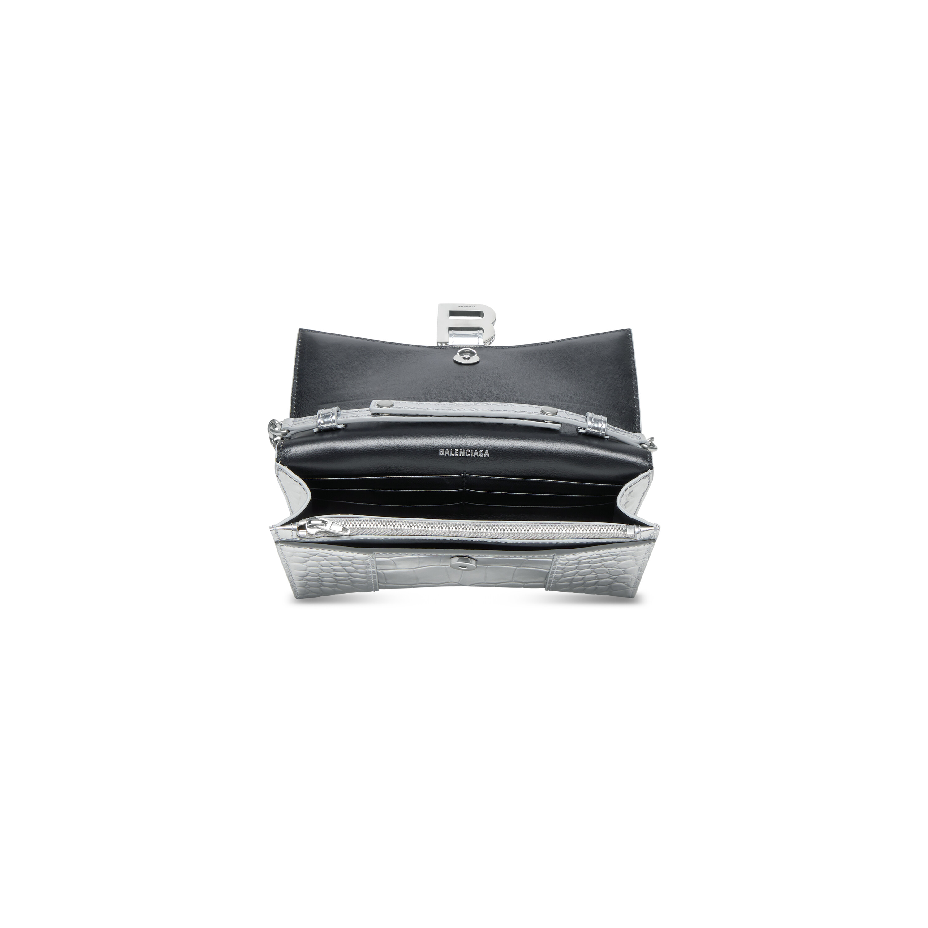 • Aged-silver B logo hardware with rhinestones
